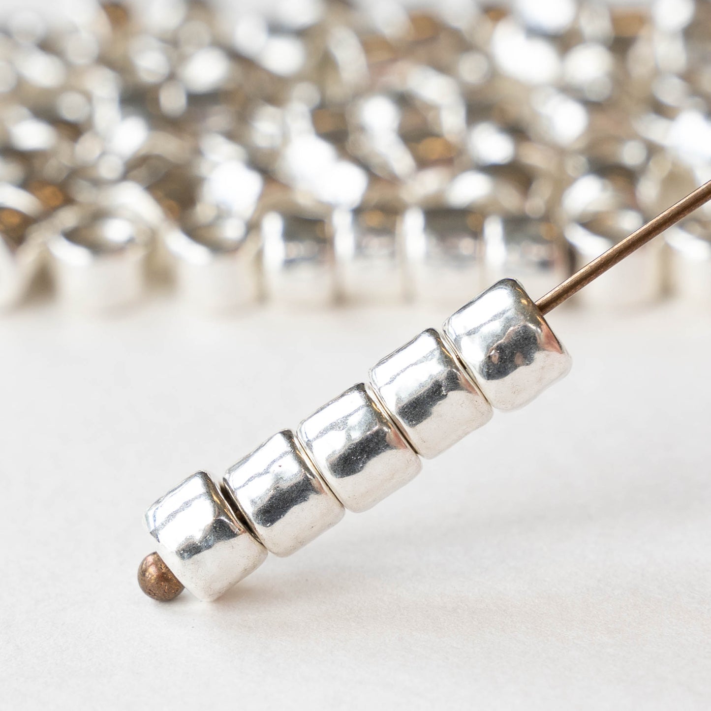 4x6mm Mini Tube - Coated Ceramic Beads - Silver