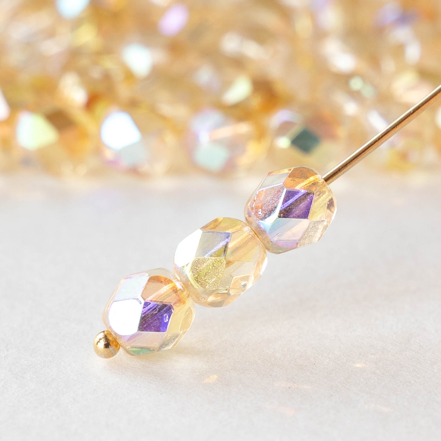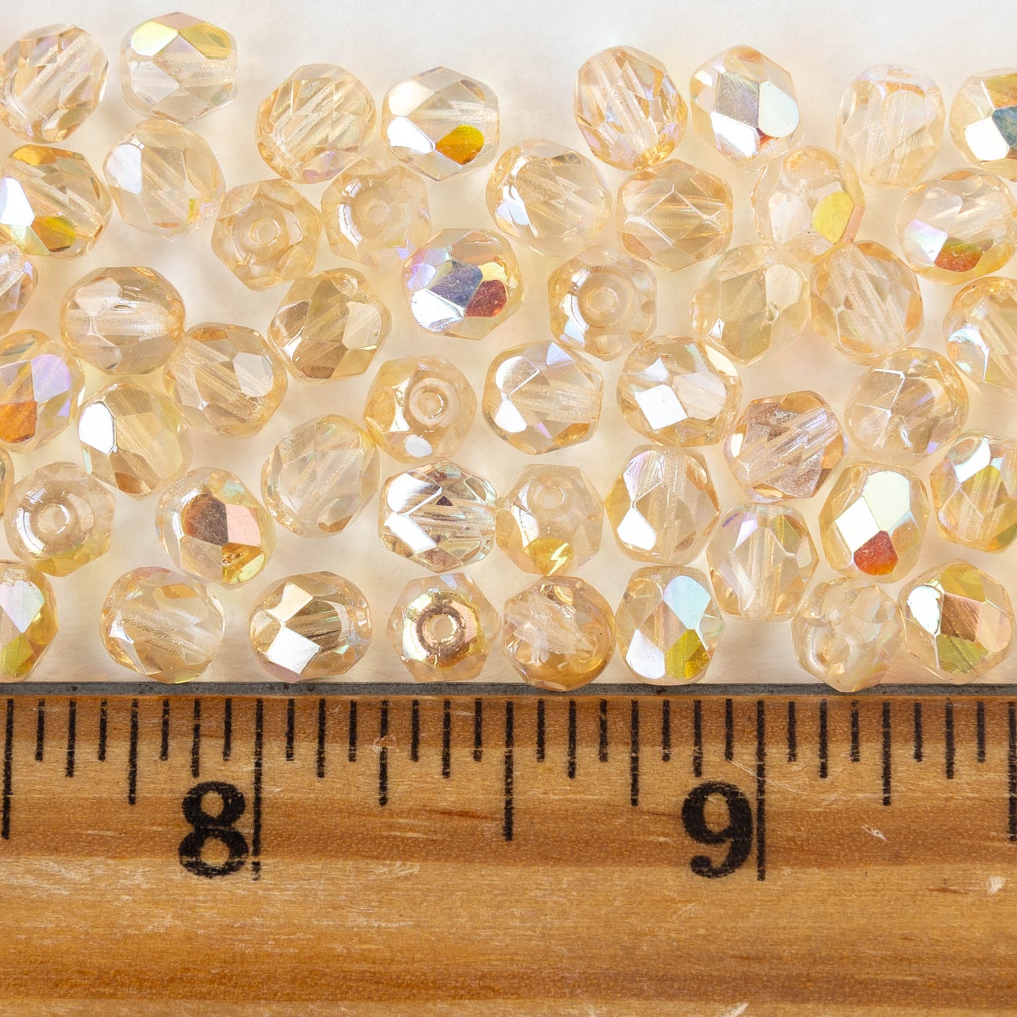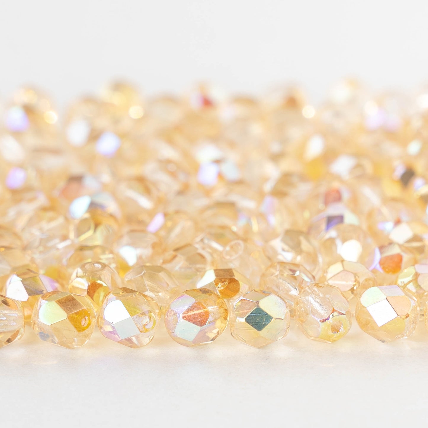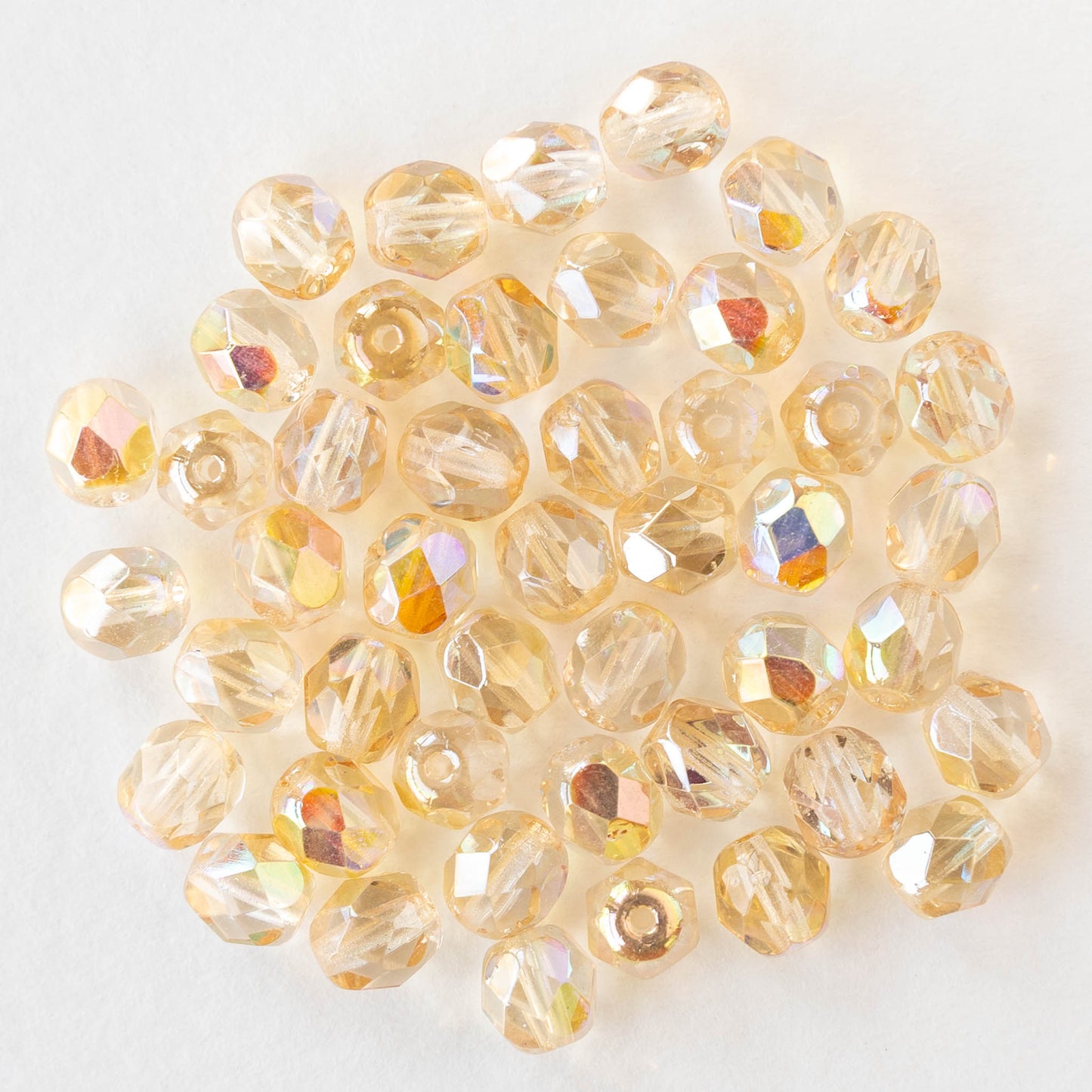 6mm Firepolished Glass Round Beads - Crystal Lemon Rainbow - 25 beads