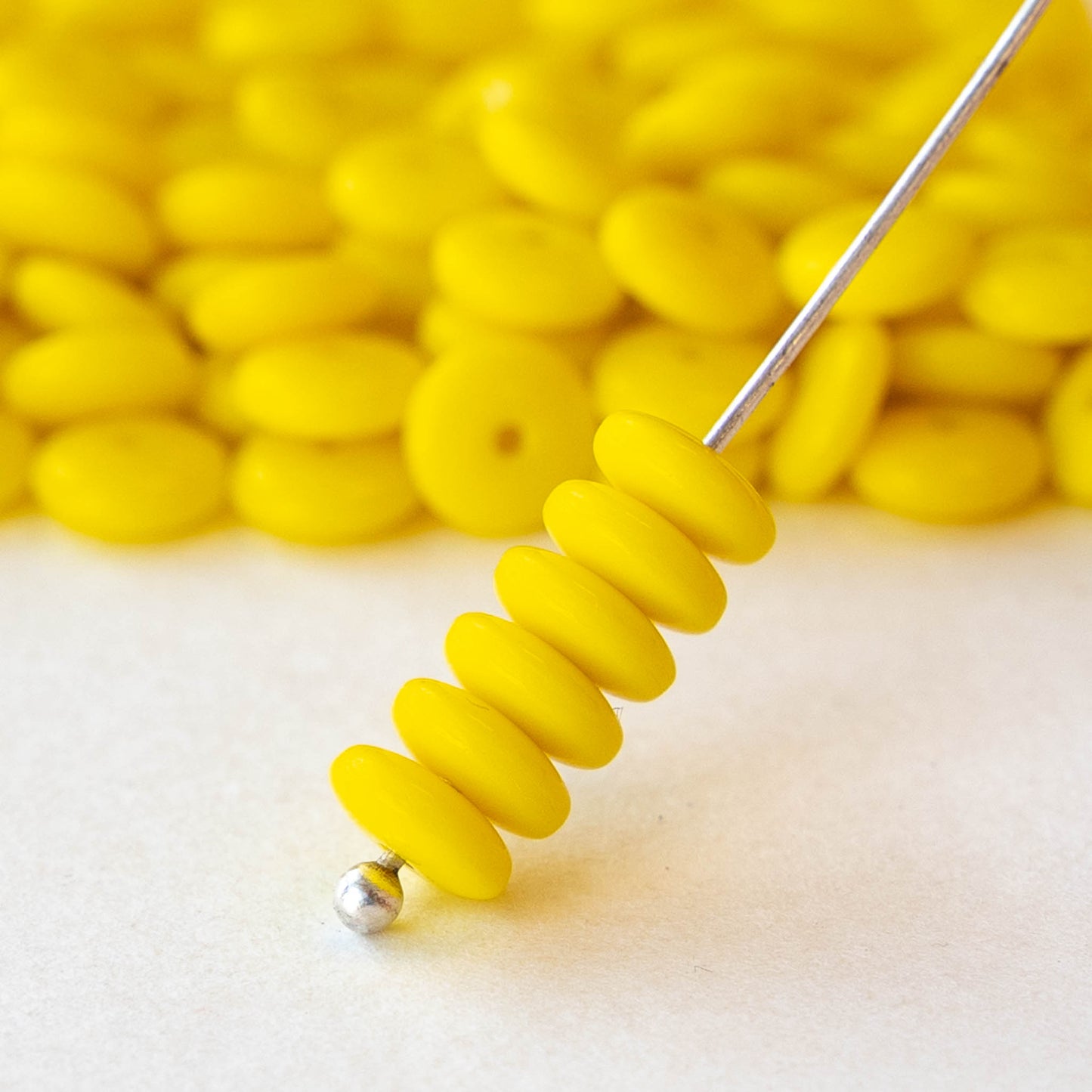 6mm Glass Rondelle Beads - Opaque Lemon Yellow - 50 or 100 Beads