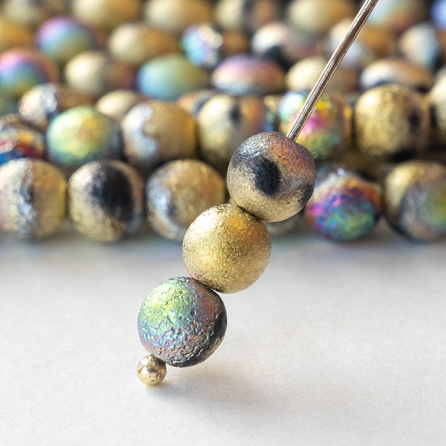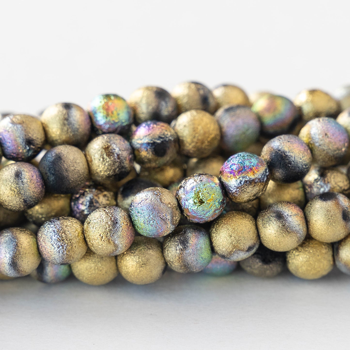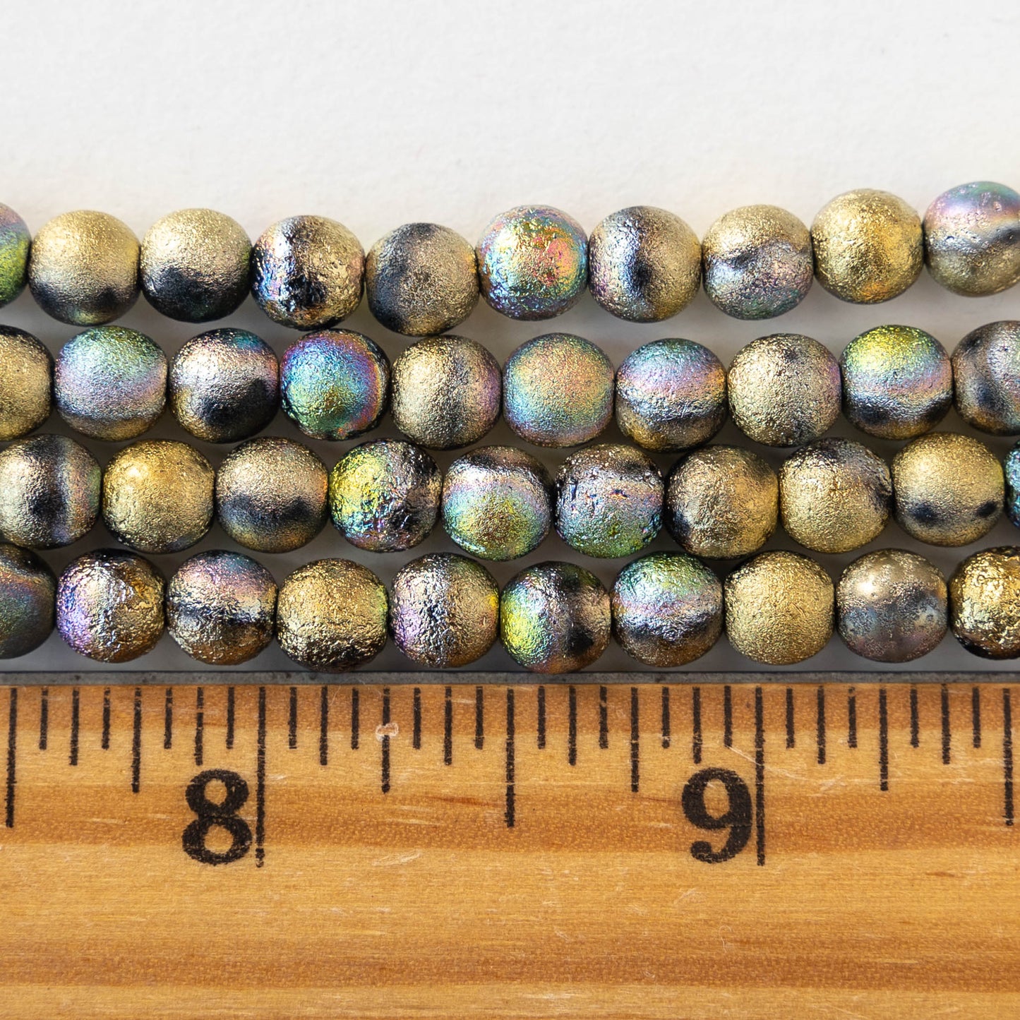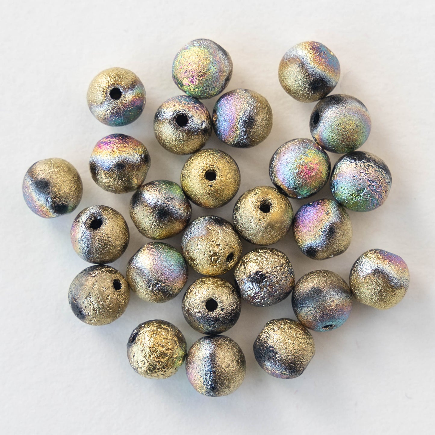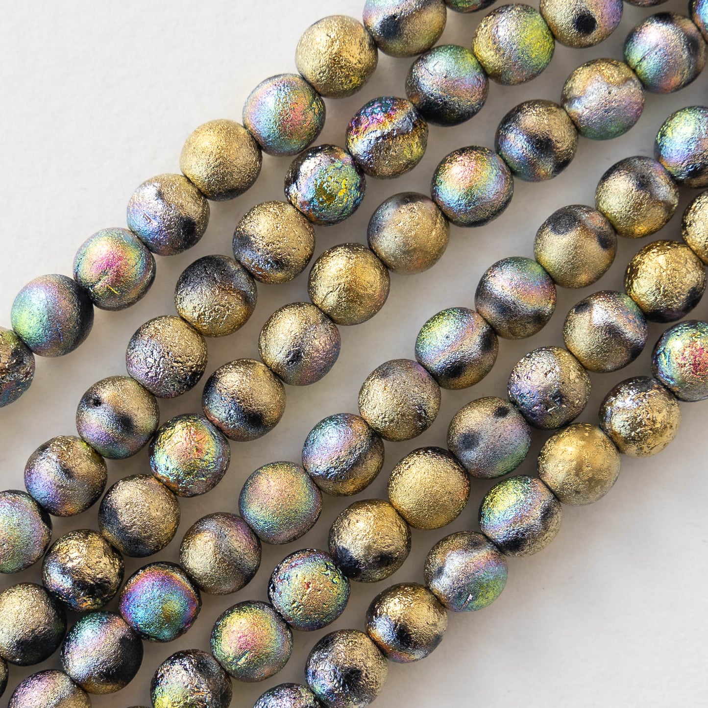 6mm Round Glass Beads - Gold Etched Rainbow - 25 Beads