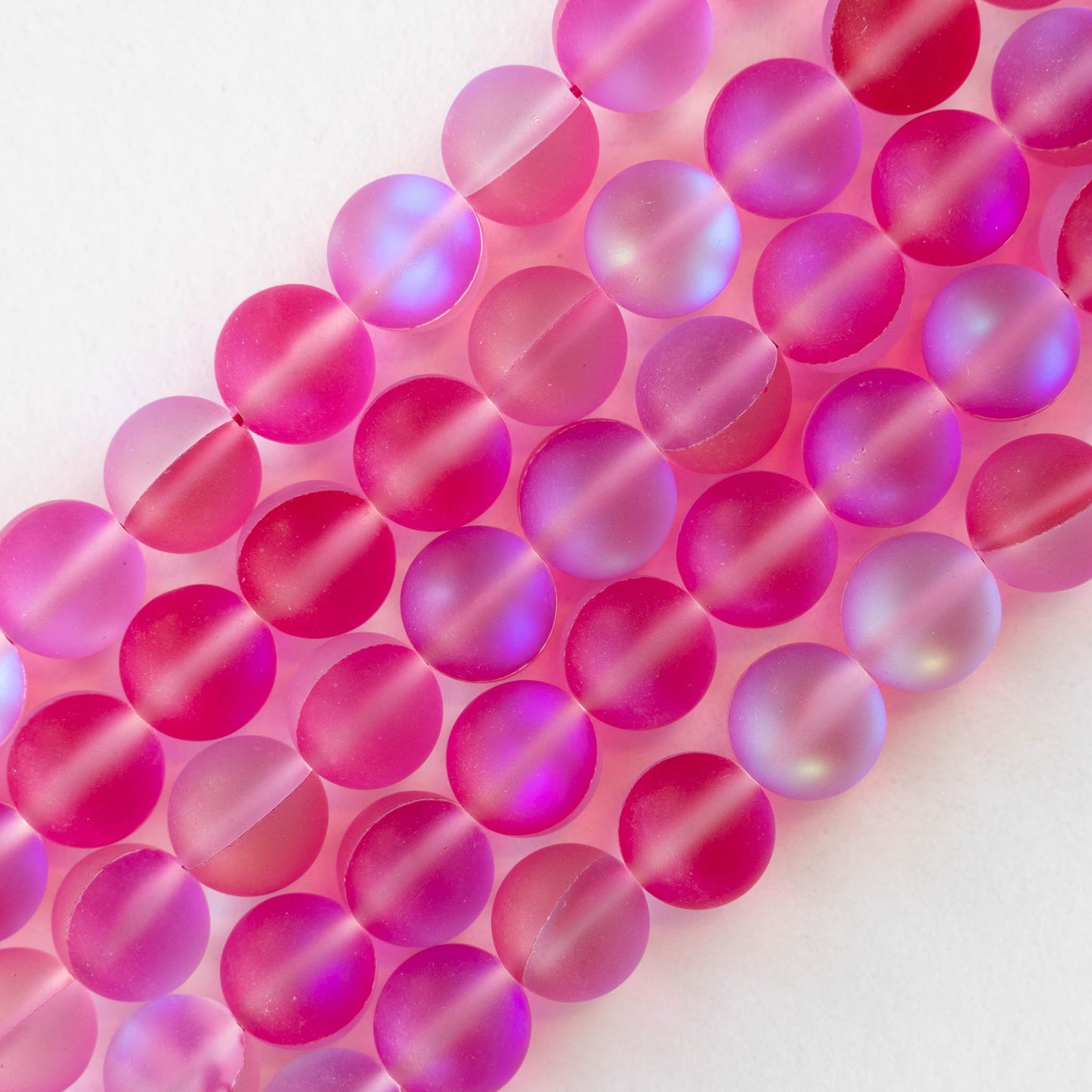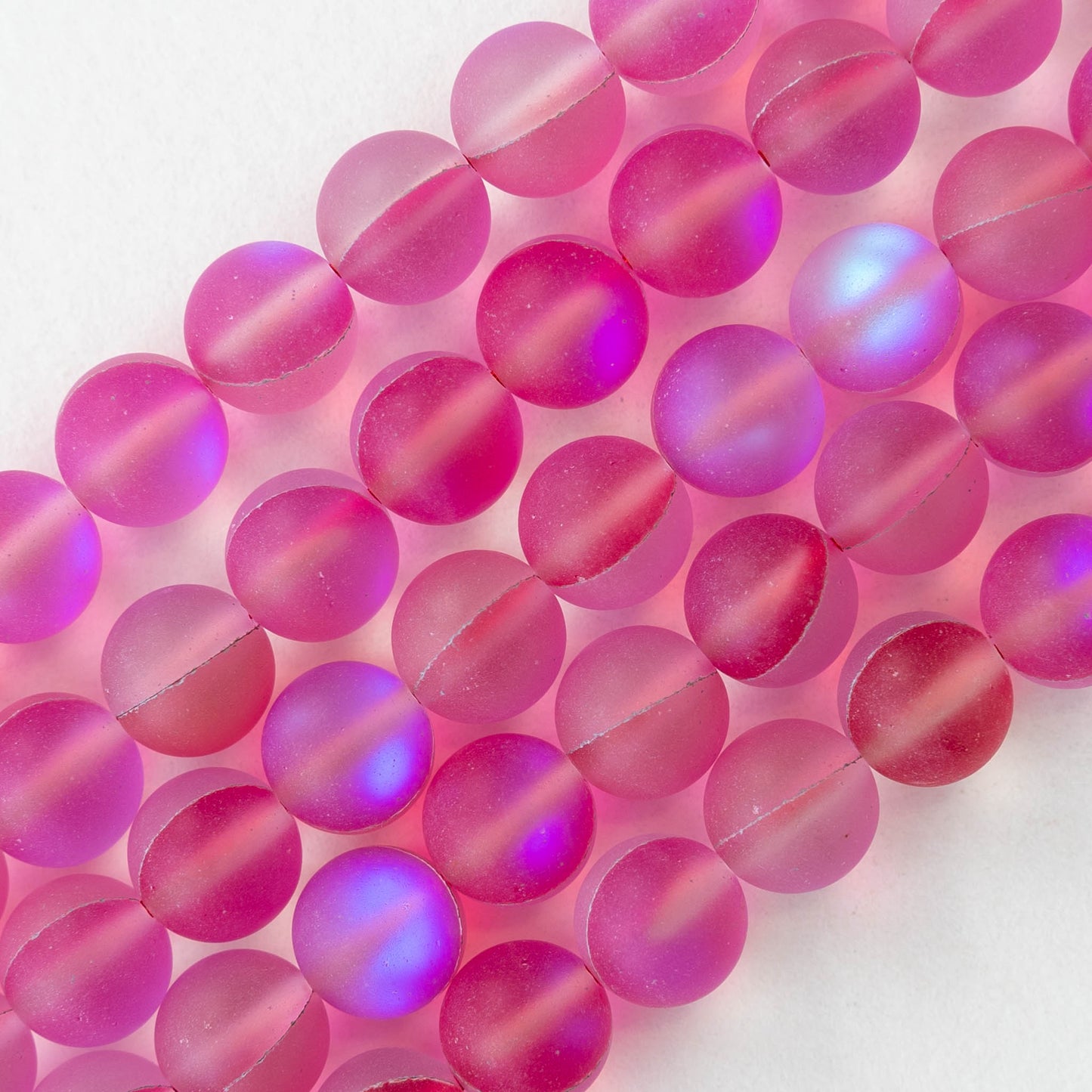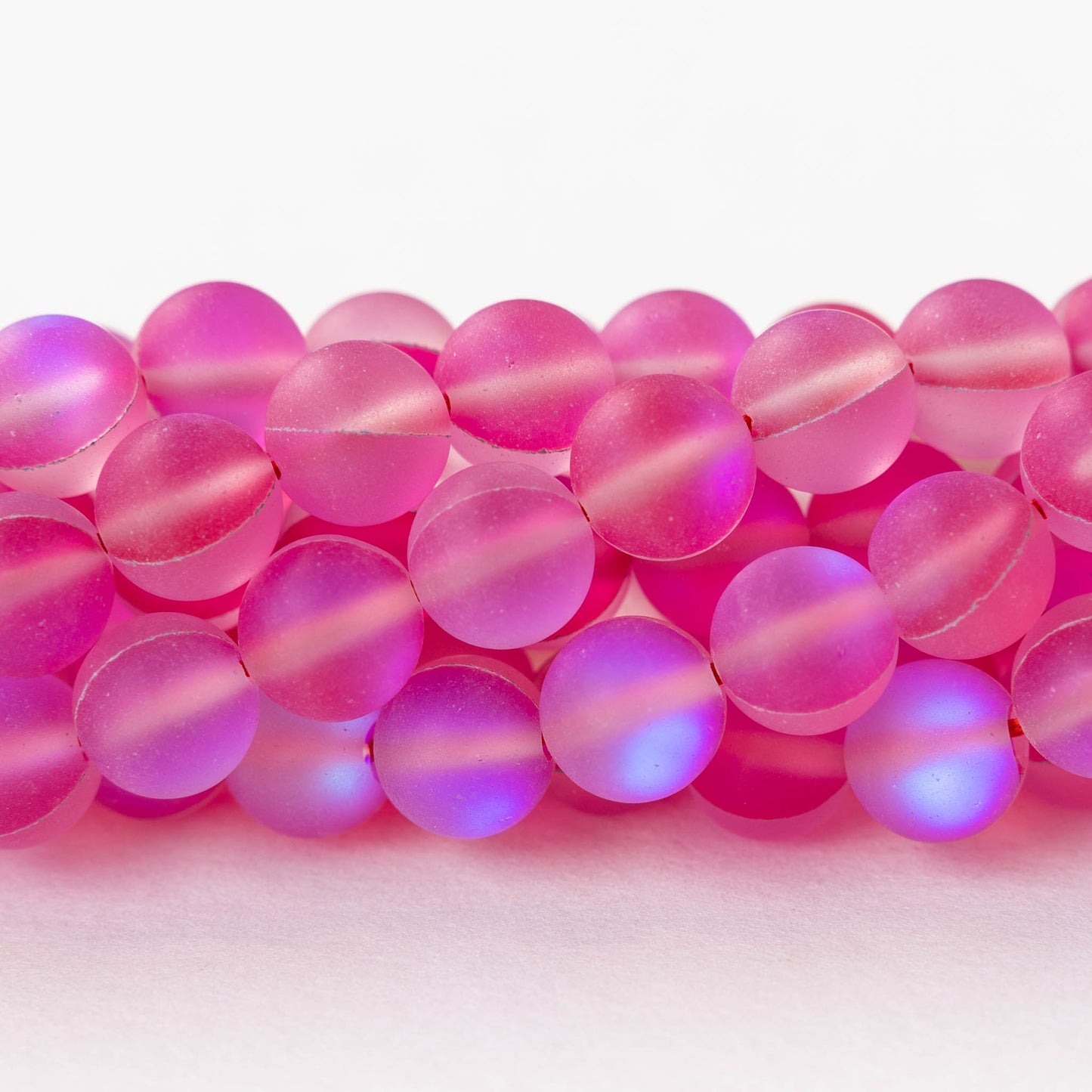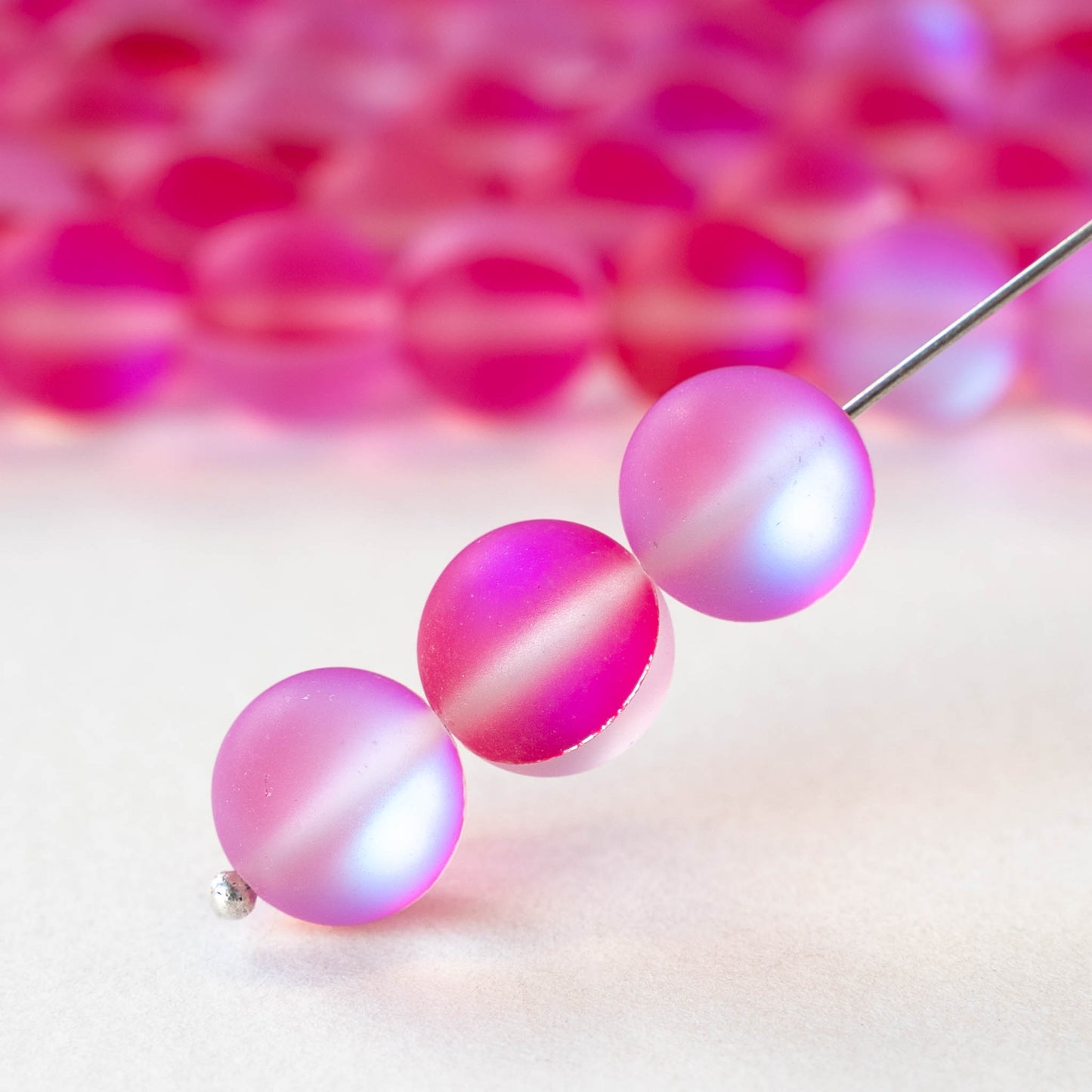 6mm, 8mm, or 10mm Round Glass Beads - Matte Bright Pink Aura