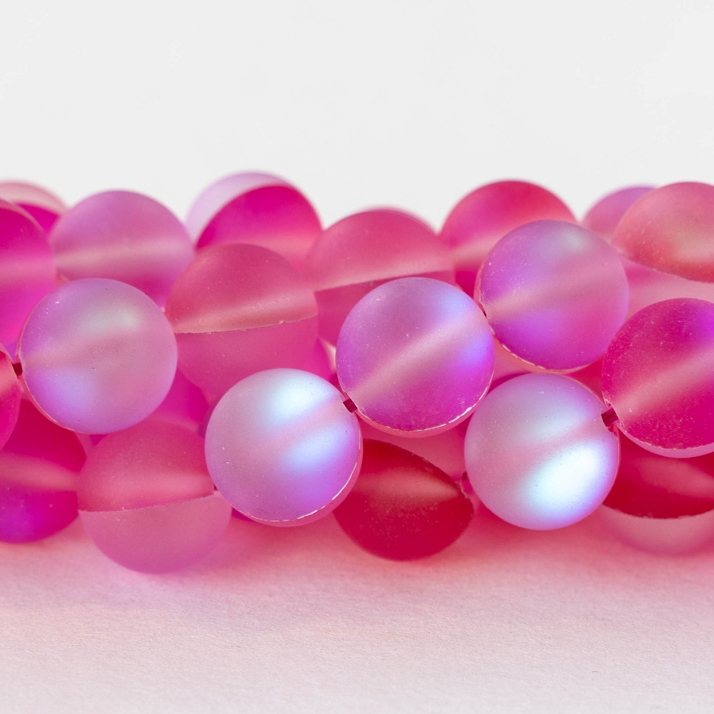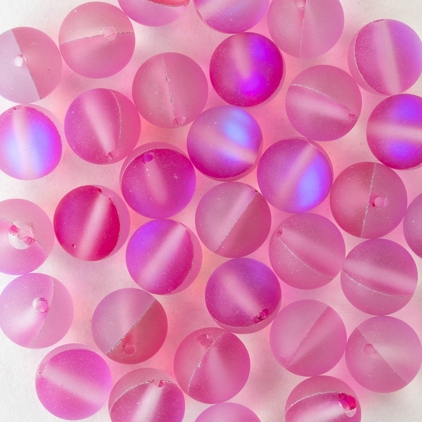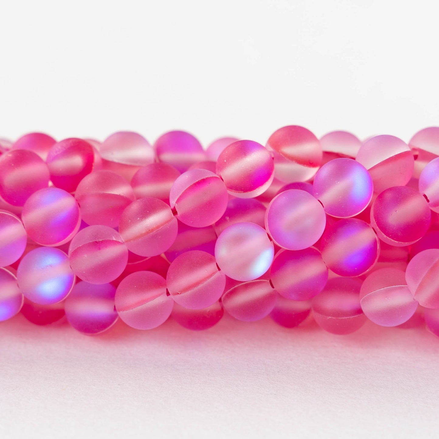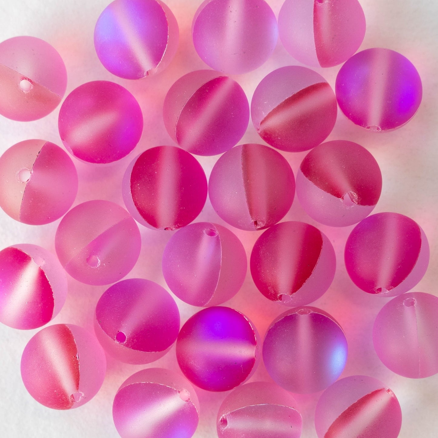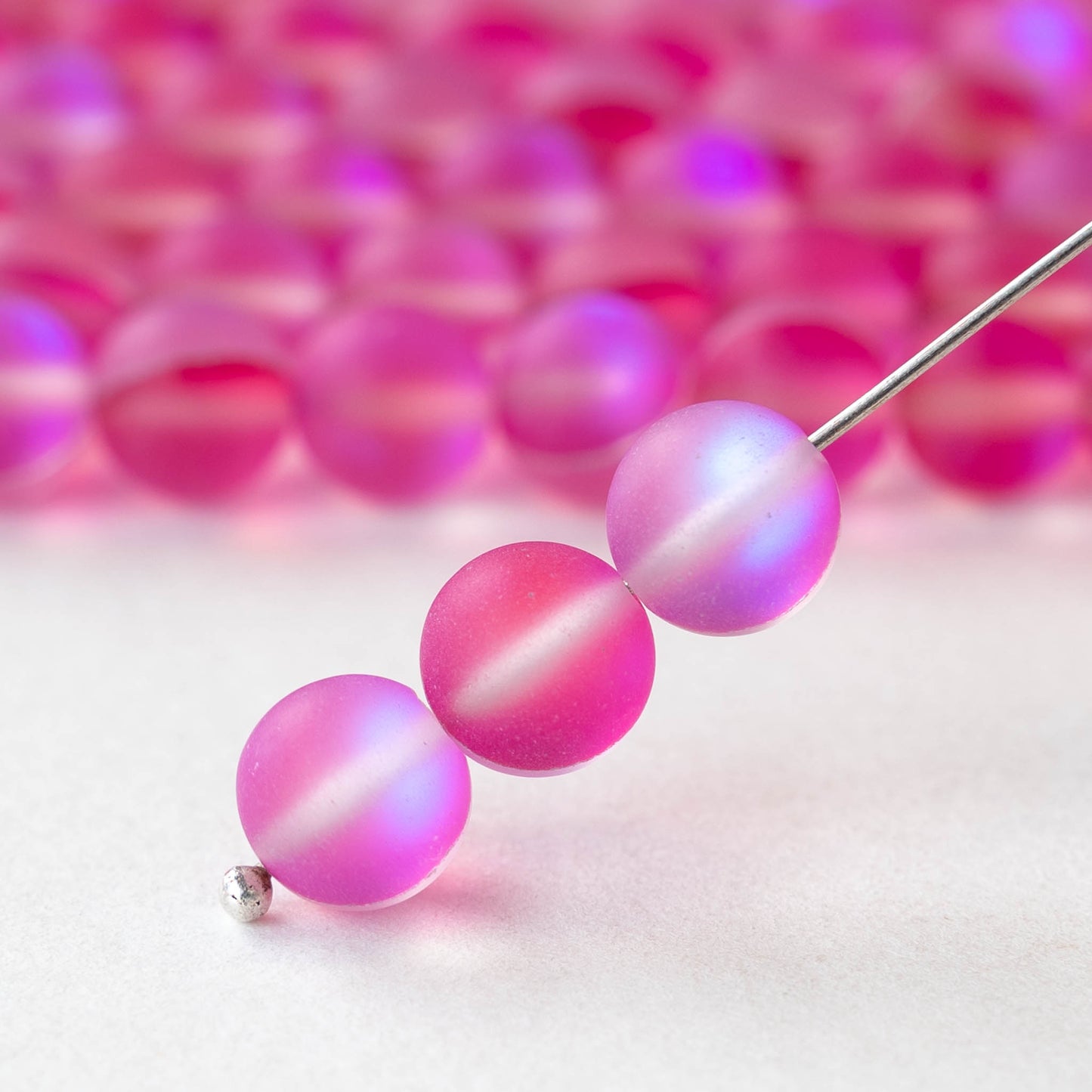 6mm, 8mm, or 10mm Round Glass Beads - Matte Bright Pink Aura