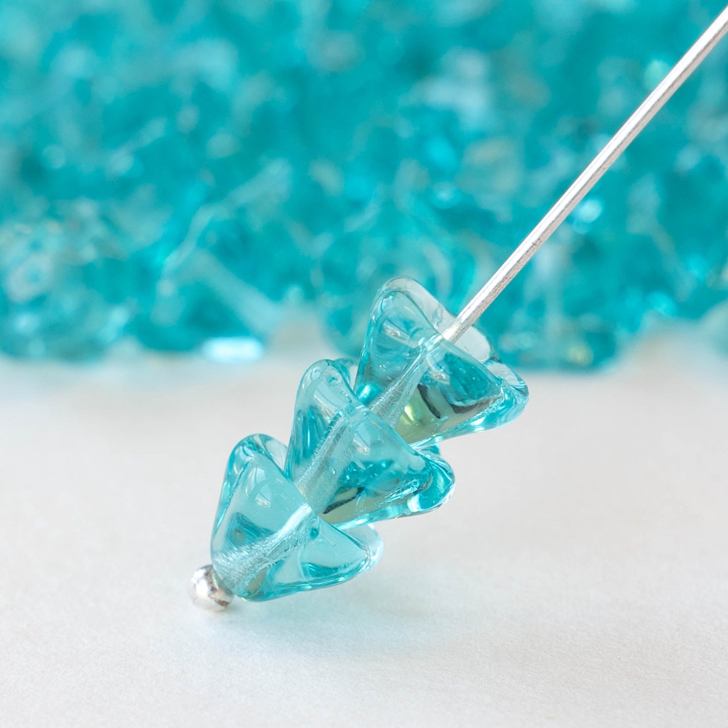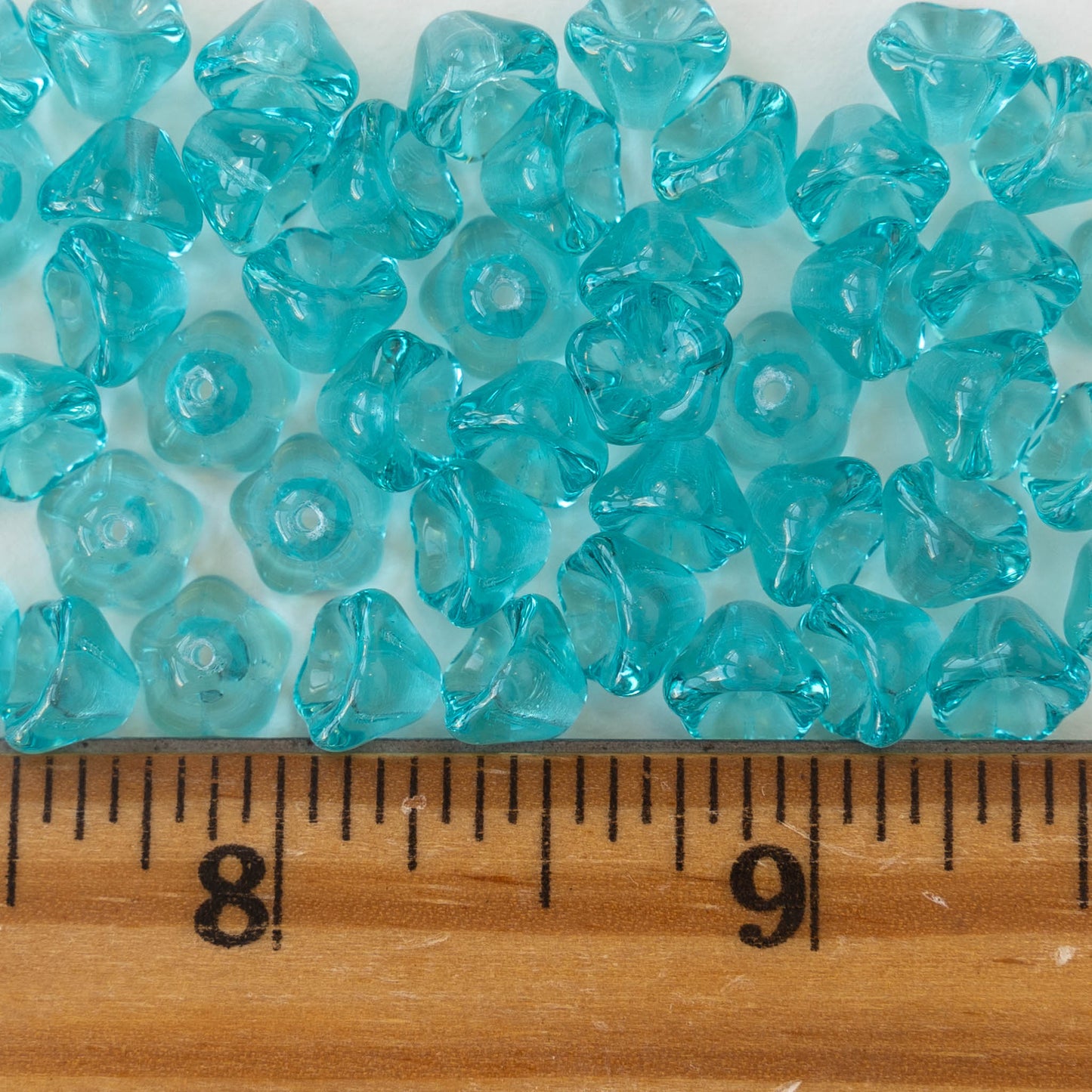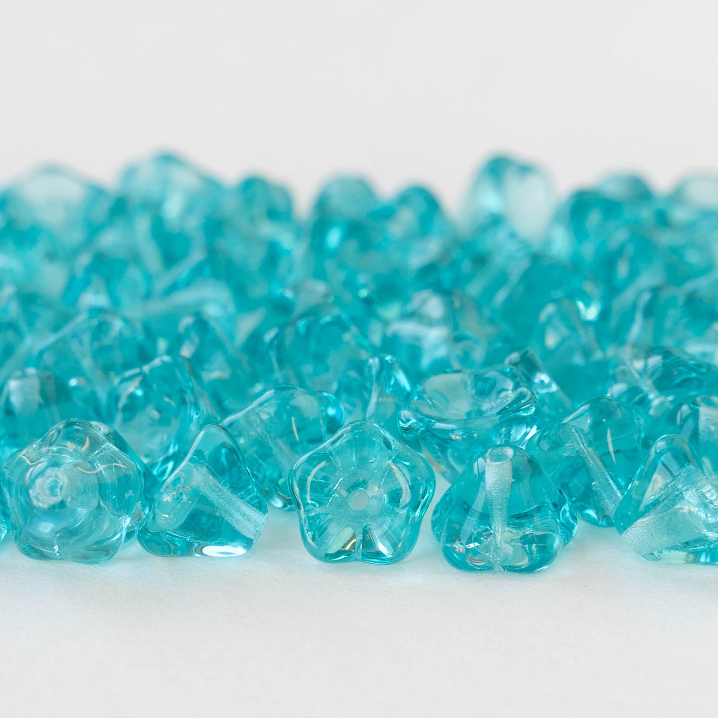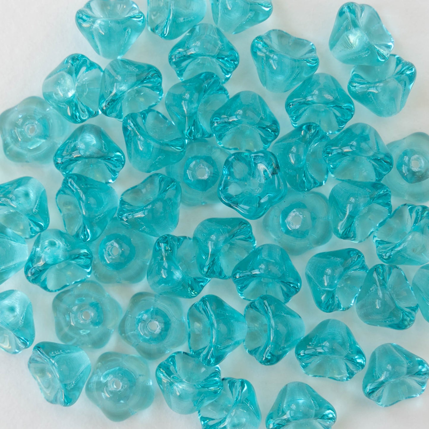 6x8mm Glass Flower Beads - Transparent Aqua - 30 Beads