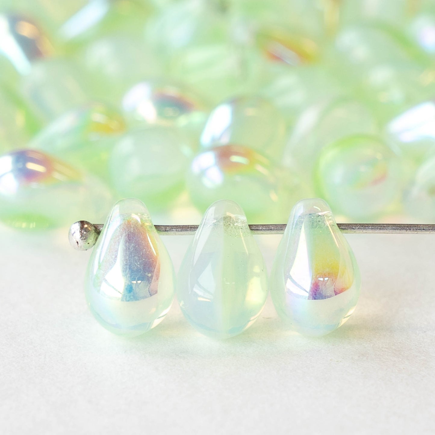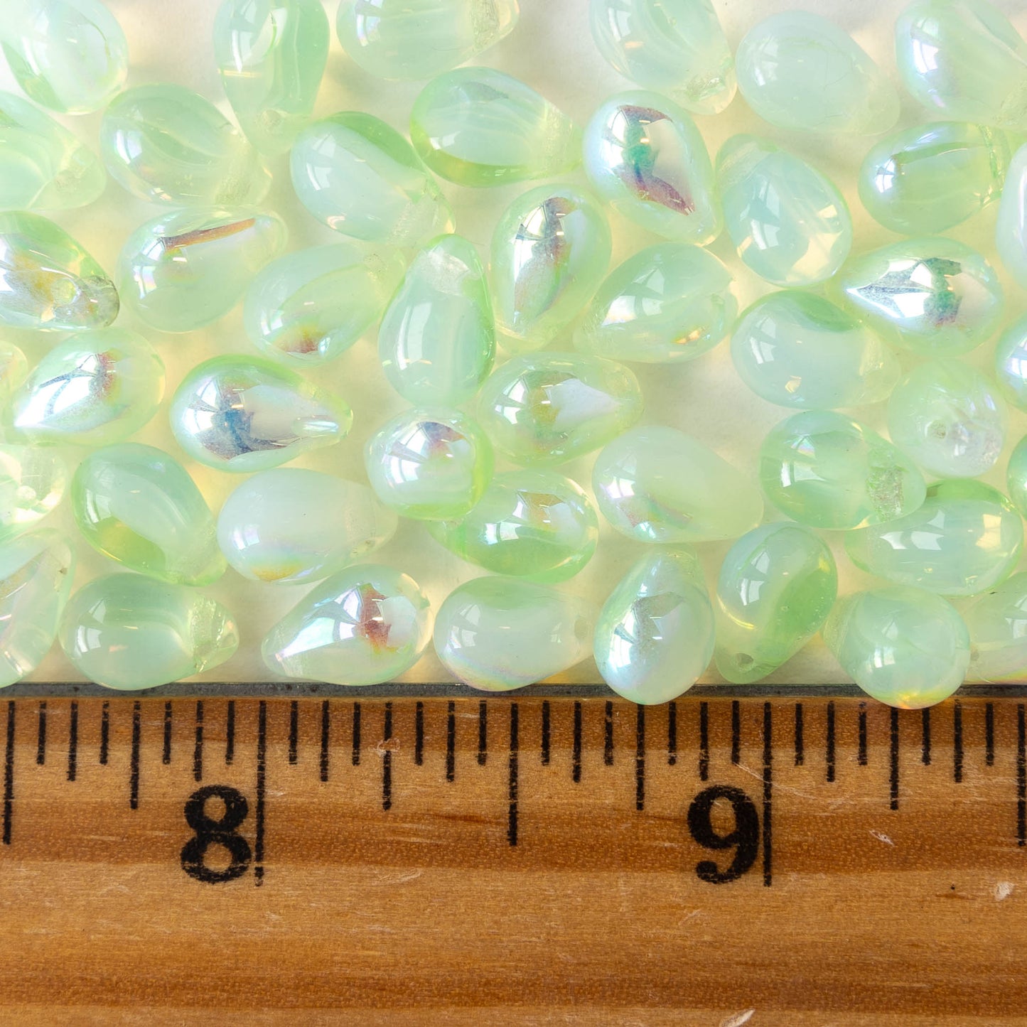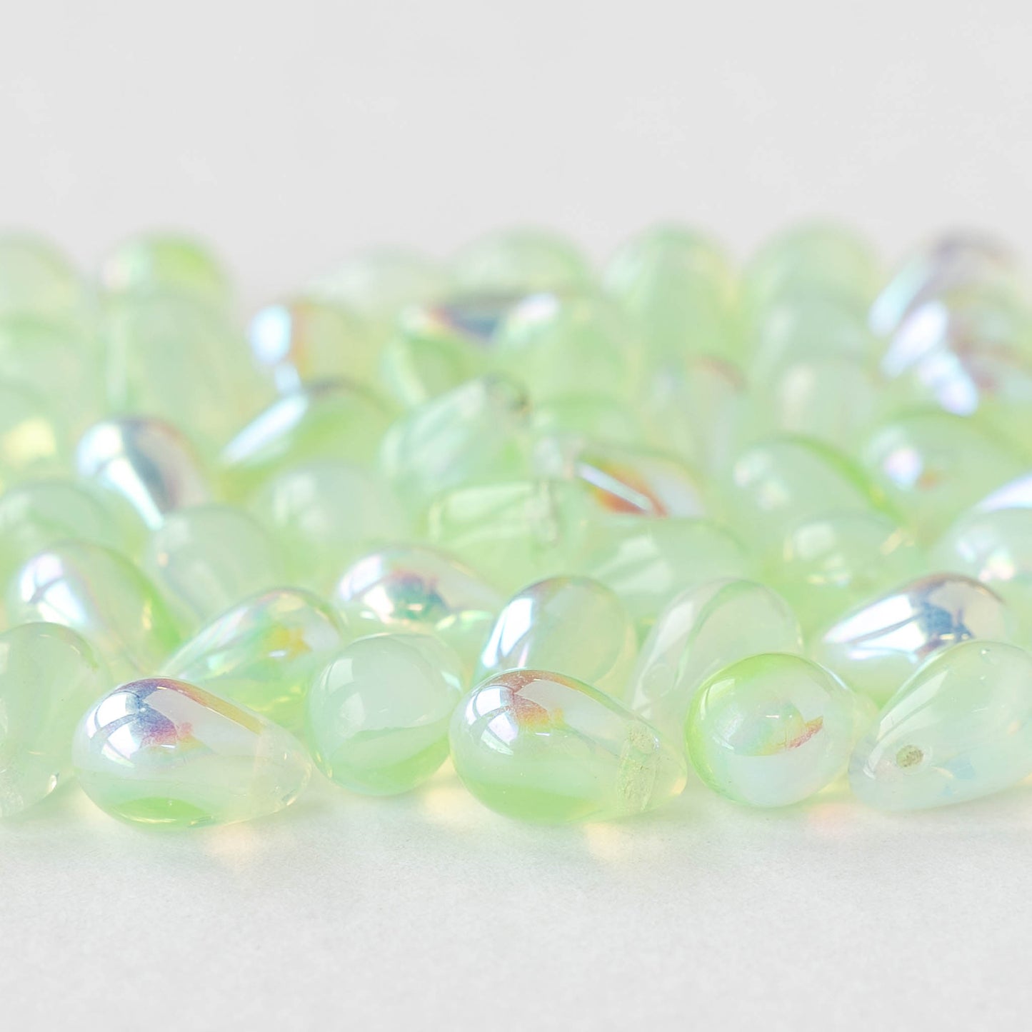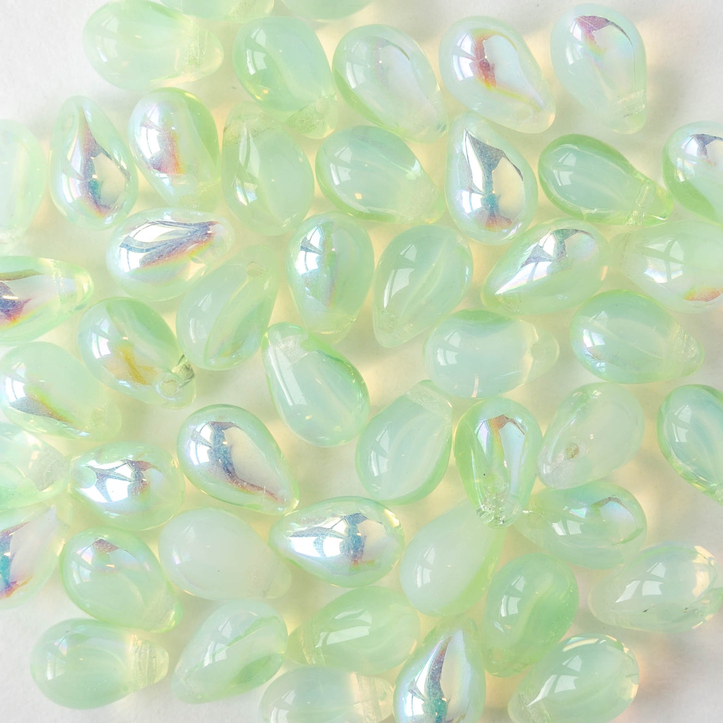 6x9mm Glass Teardrop Beads - Light Mint Green AB - 30 Beads