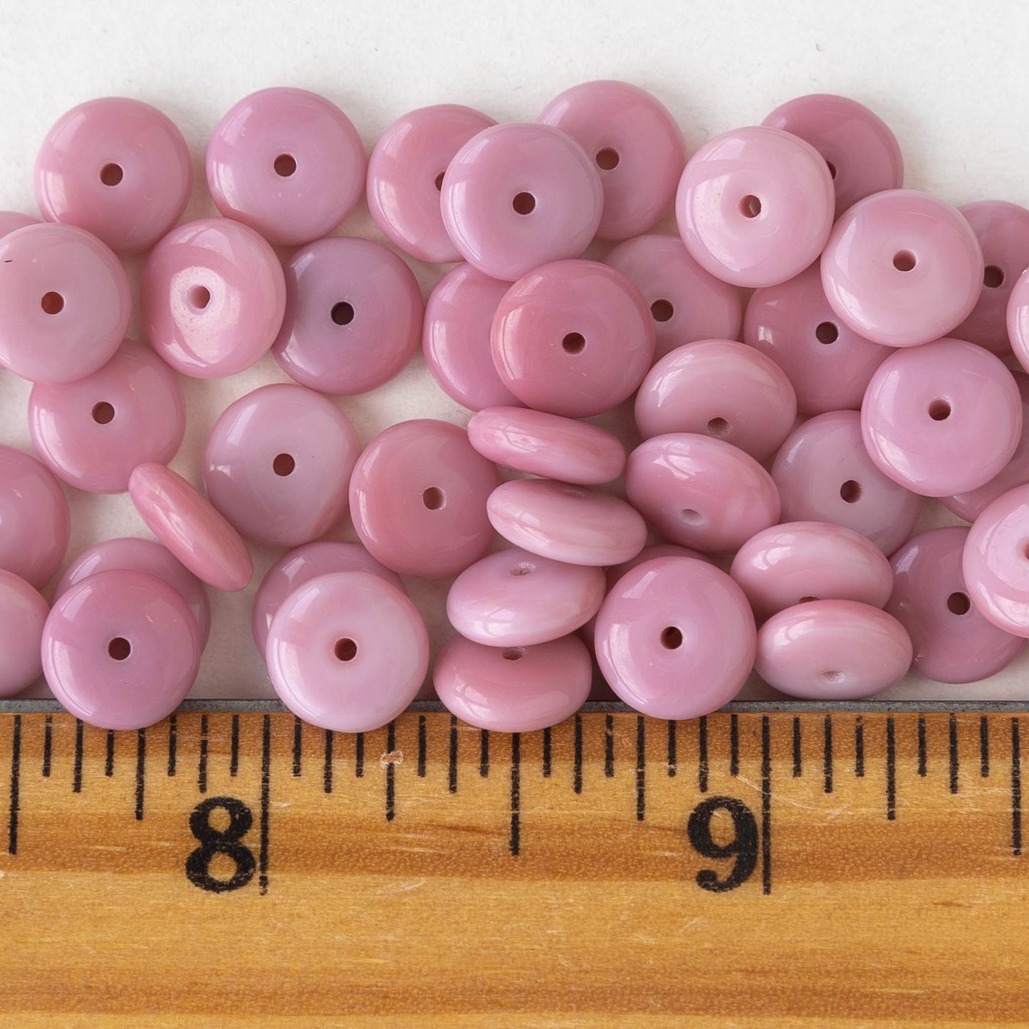 8mm Glass Rondelle Beads - Opaque Pink - 30 Beads