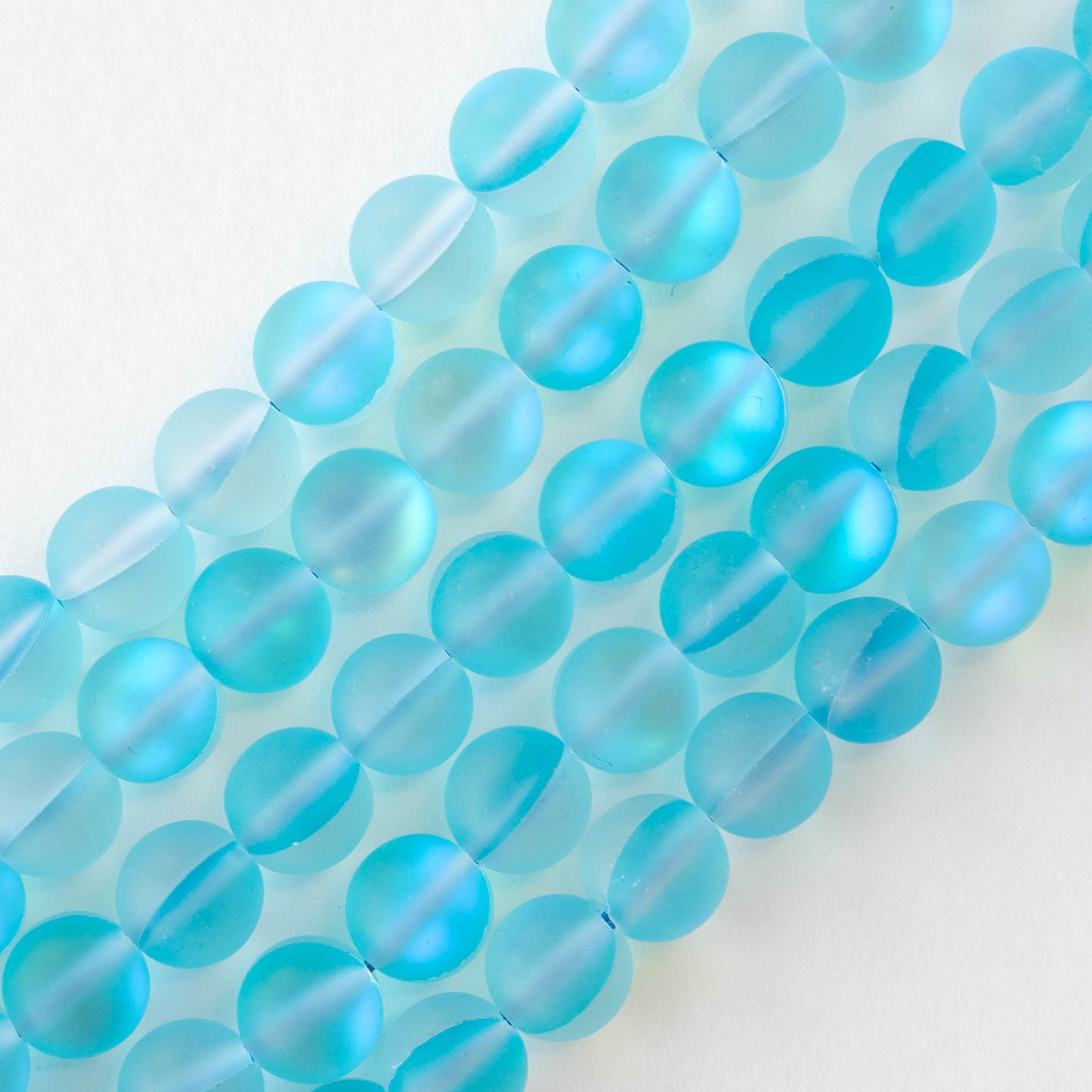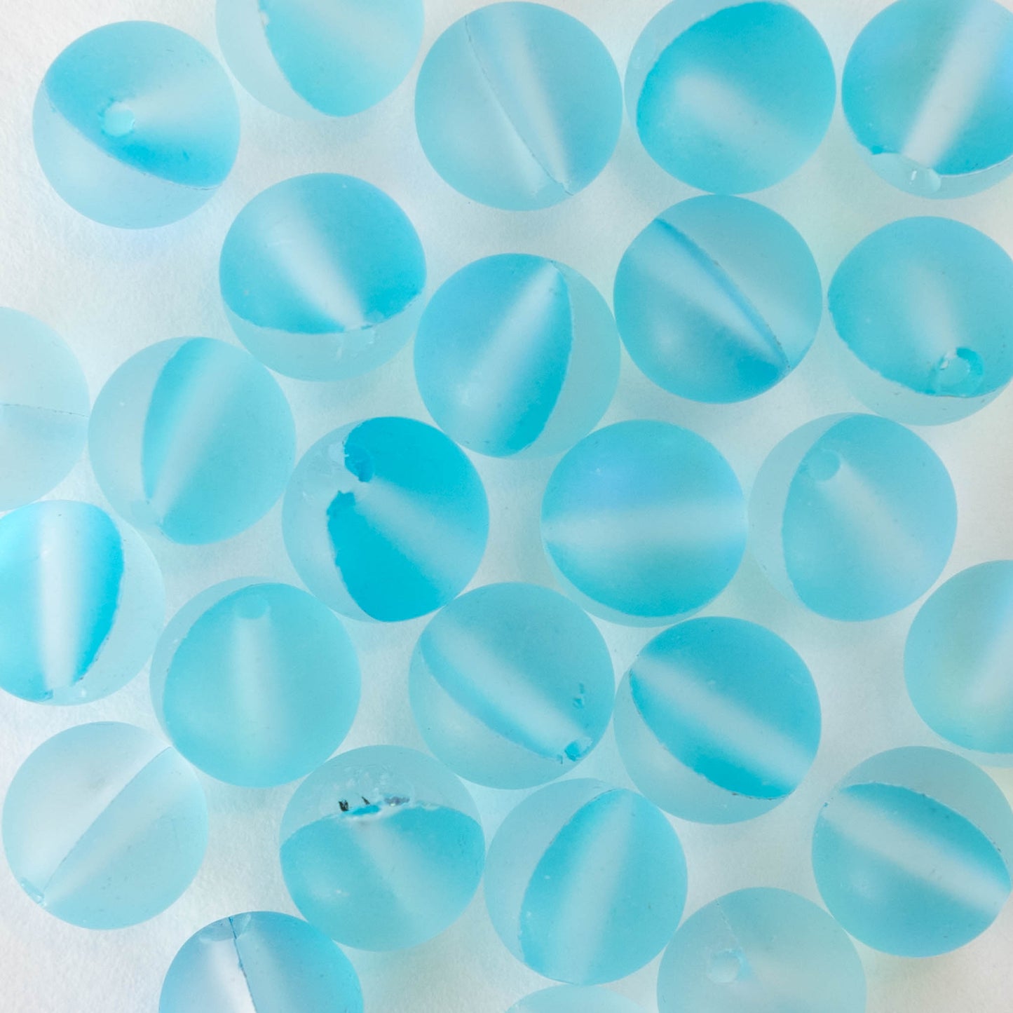 8mm Round Glass Beads - Mystic Aura Aqua Matte- 20 beads