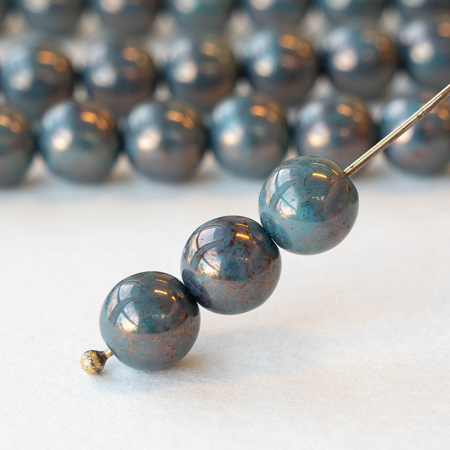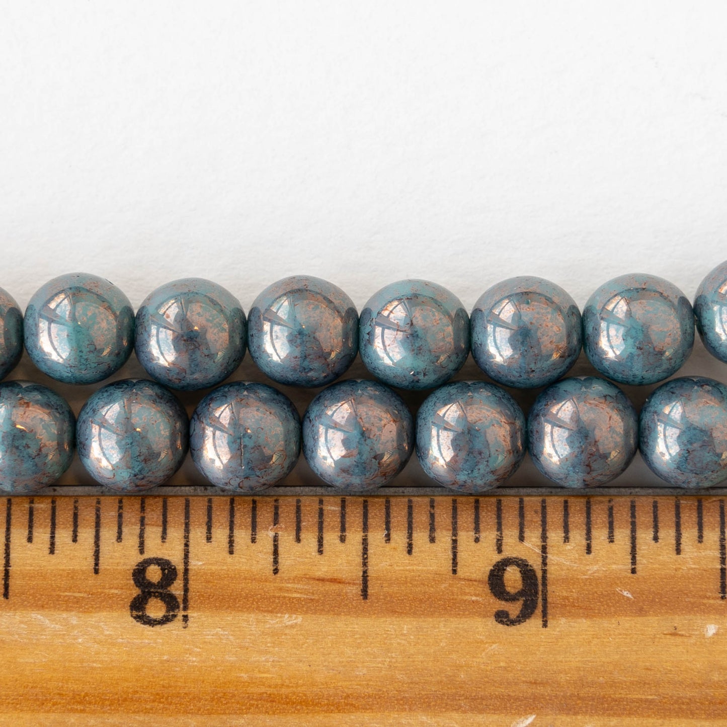 8mm Round Glass Beads - Opaque Turquoise Bronze Luster - 20 beads