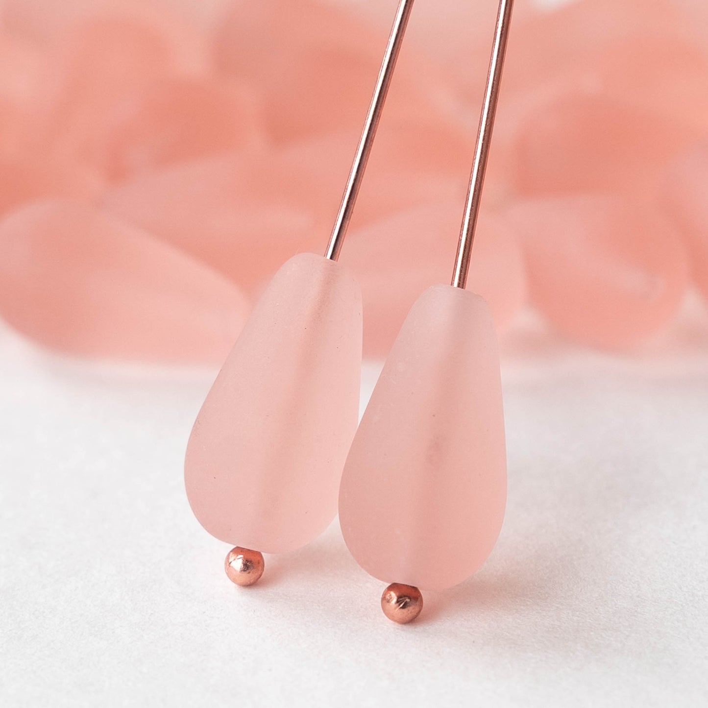 8x15mm Glass Teardrop Beads - Rosaline Matte - 20 Beads