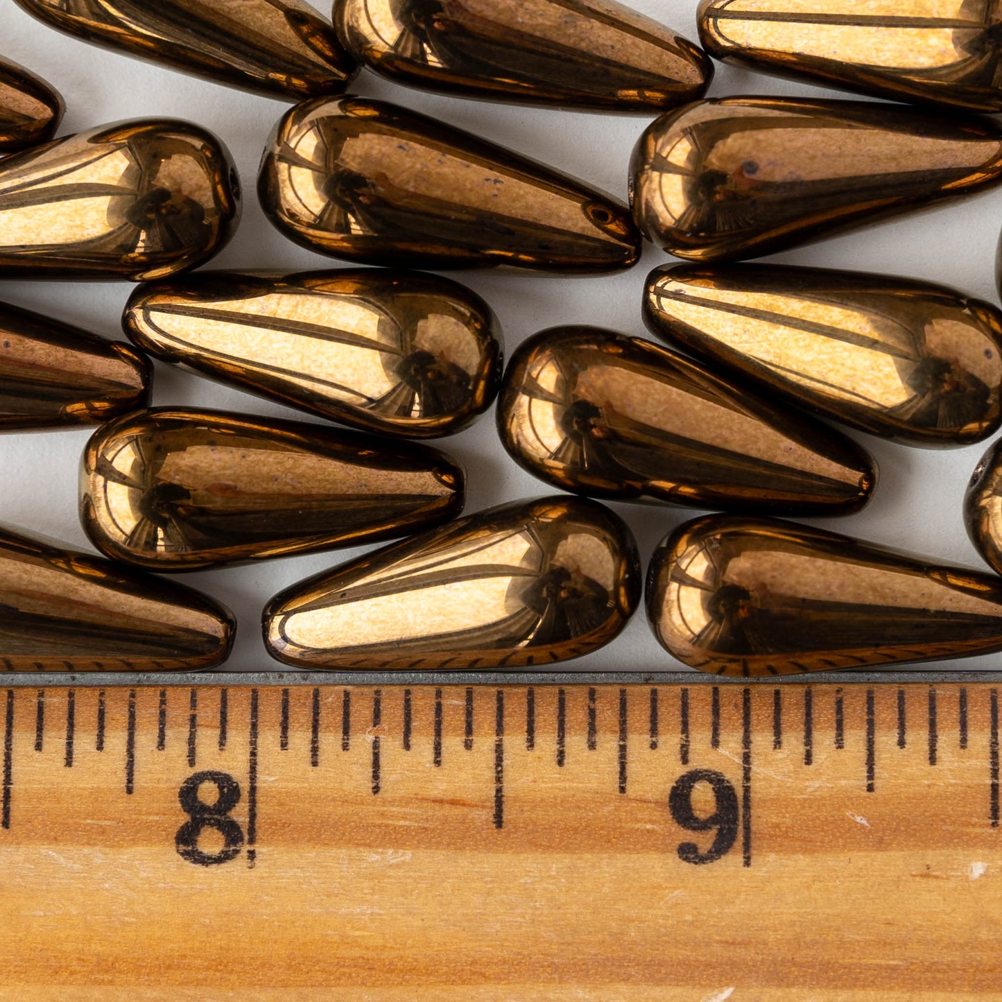 8x20mm Glass Teardrops - Metallic Bronze - 10 beads
