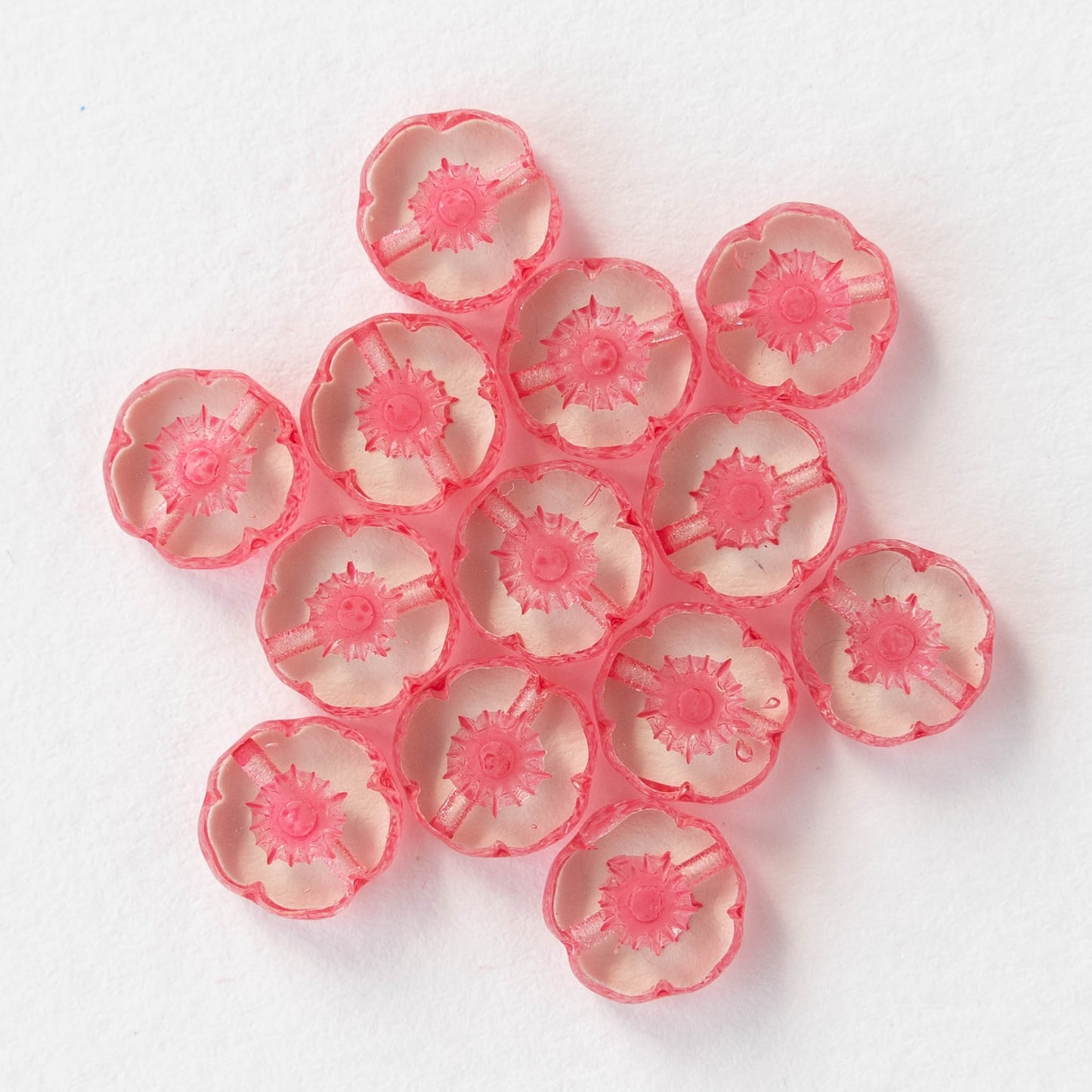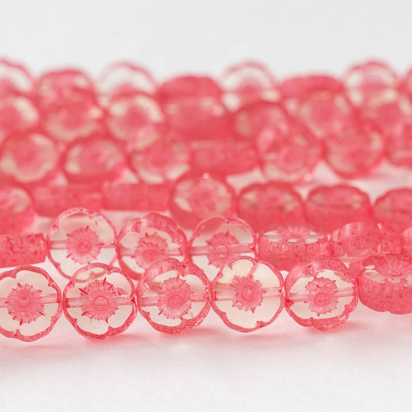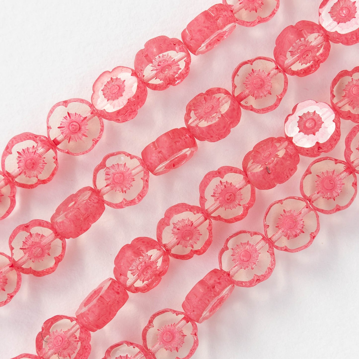 8mm Flower Beads - Crystal with Coral -20 Beads