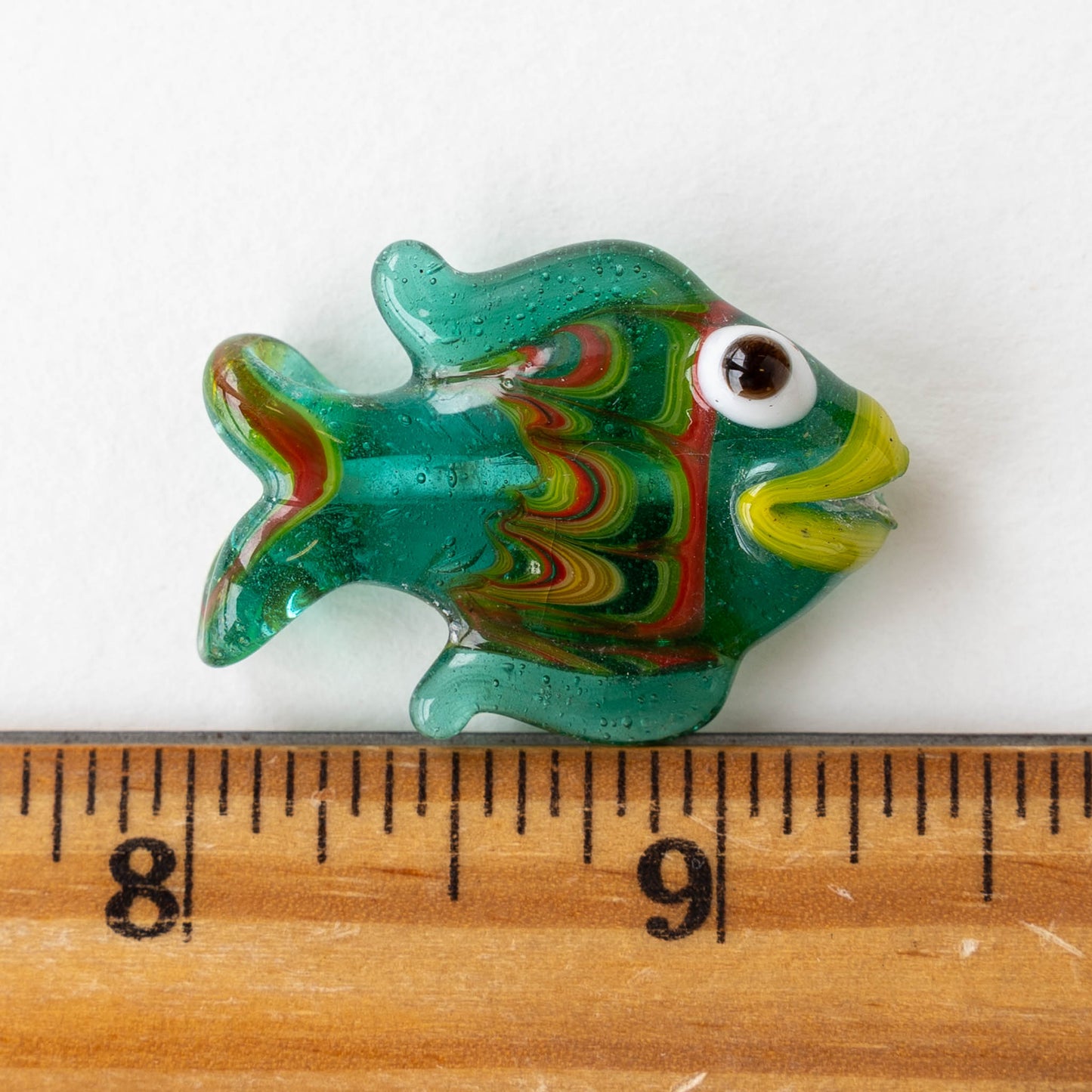 Handmade Lampwork Glass Fish Beads - Transparent Emerald with Yellow and Red - 1 beads