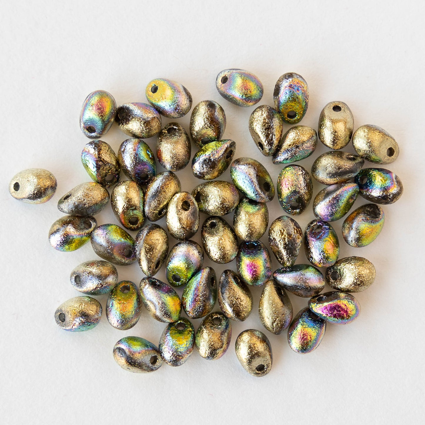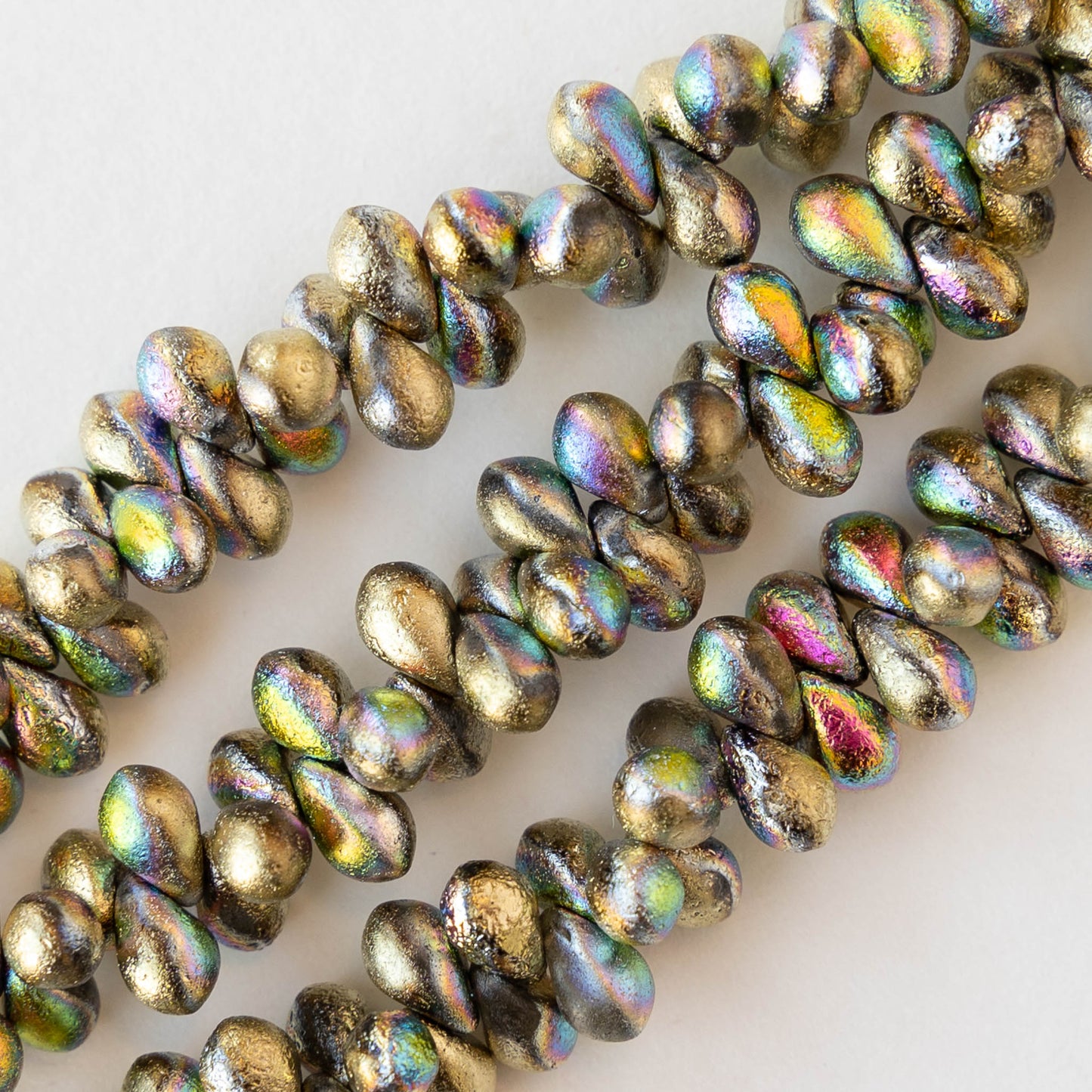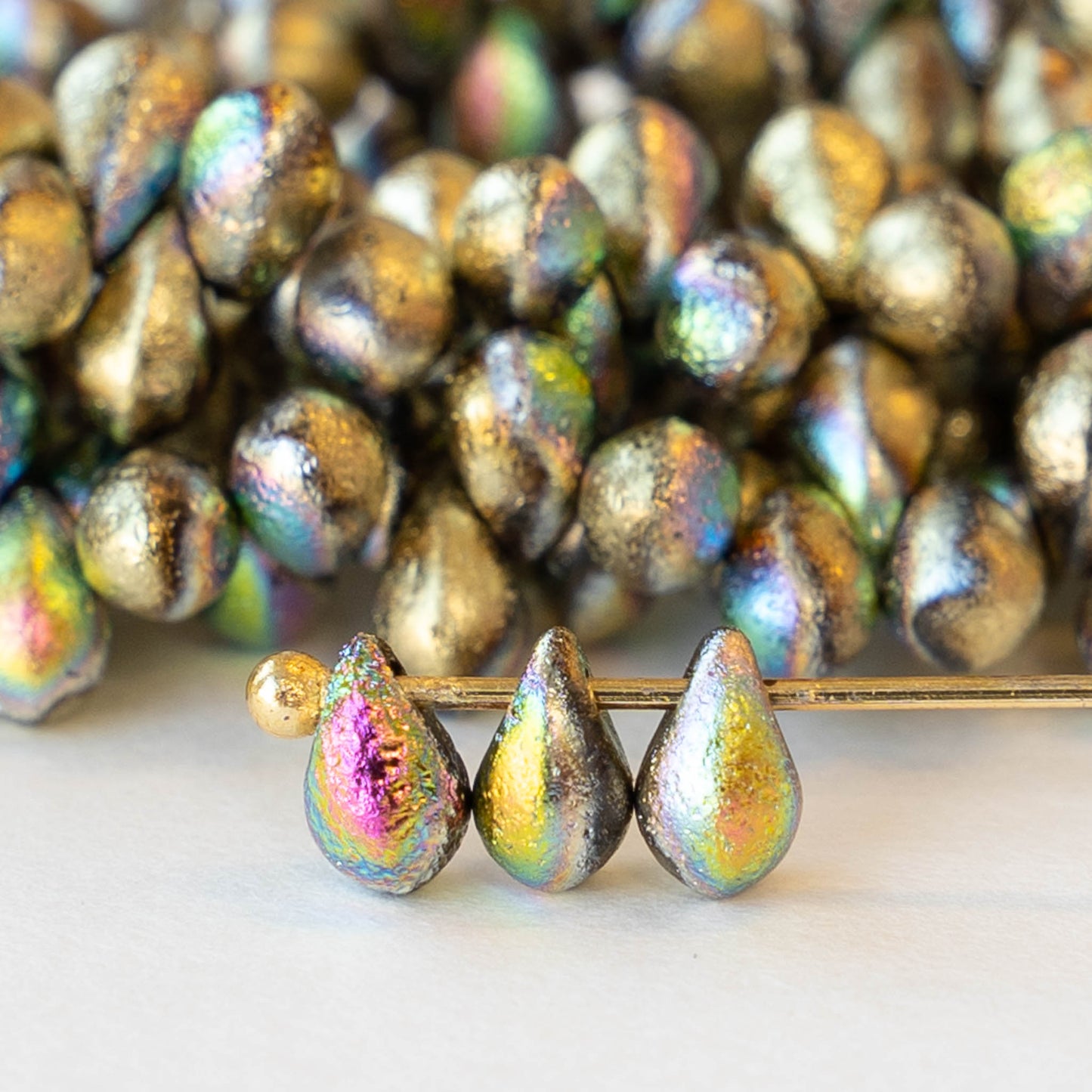 Glass Teardrop Beads - Etched Gold AB - 50 beads