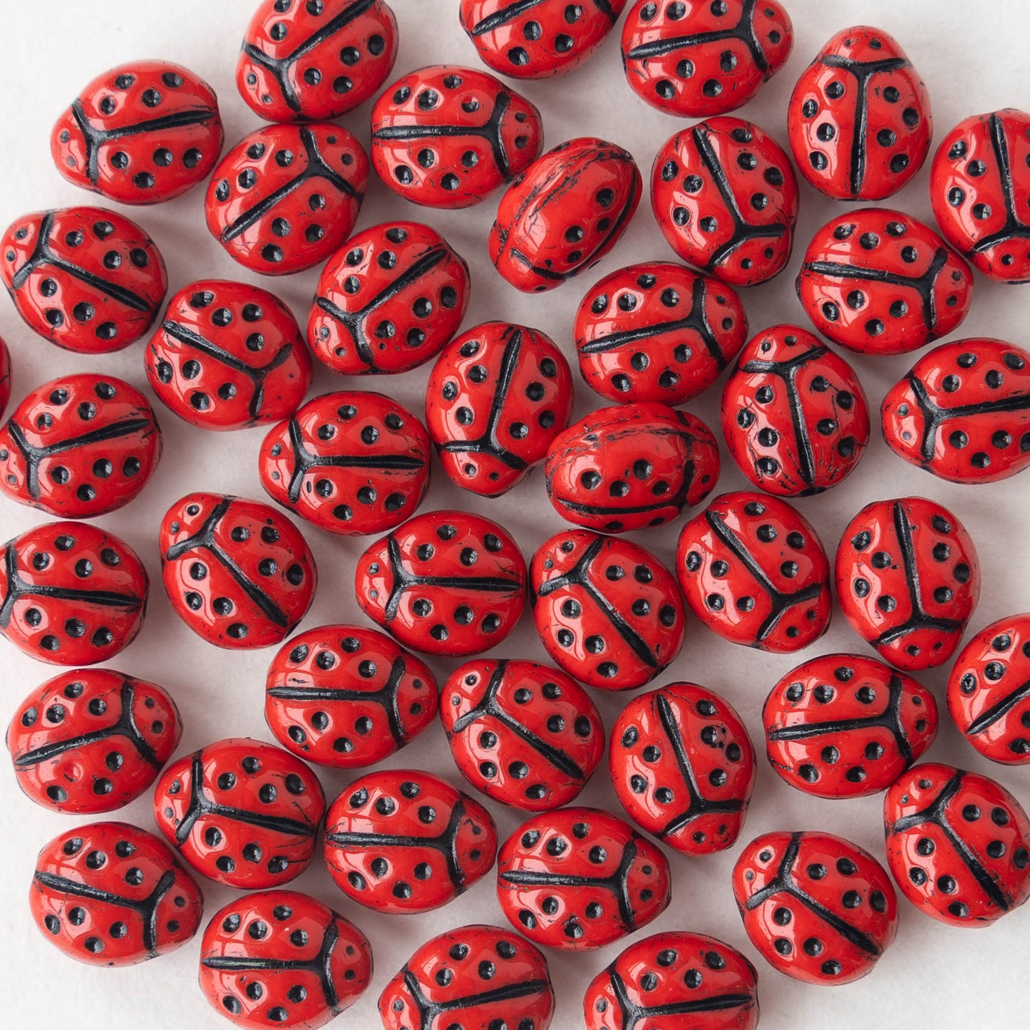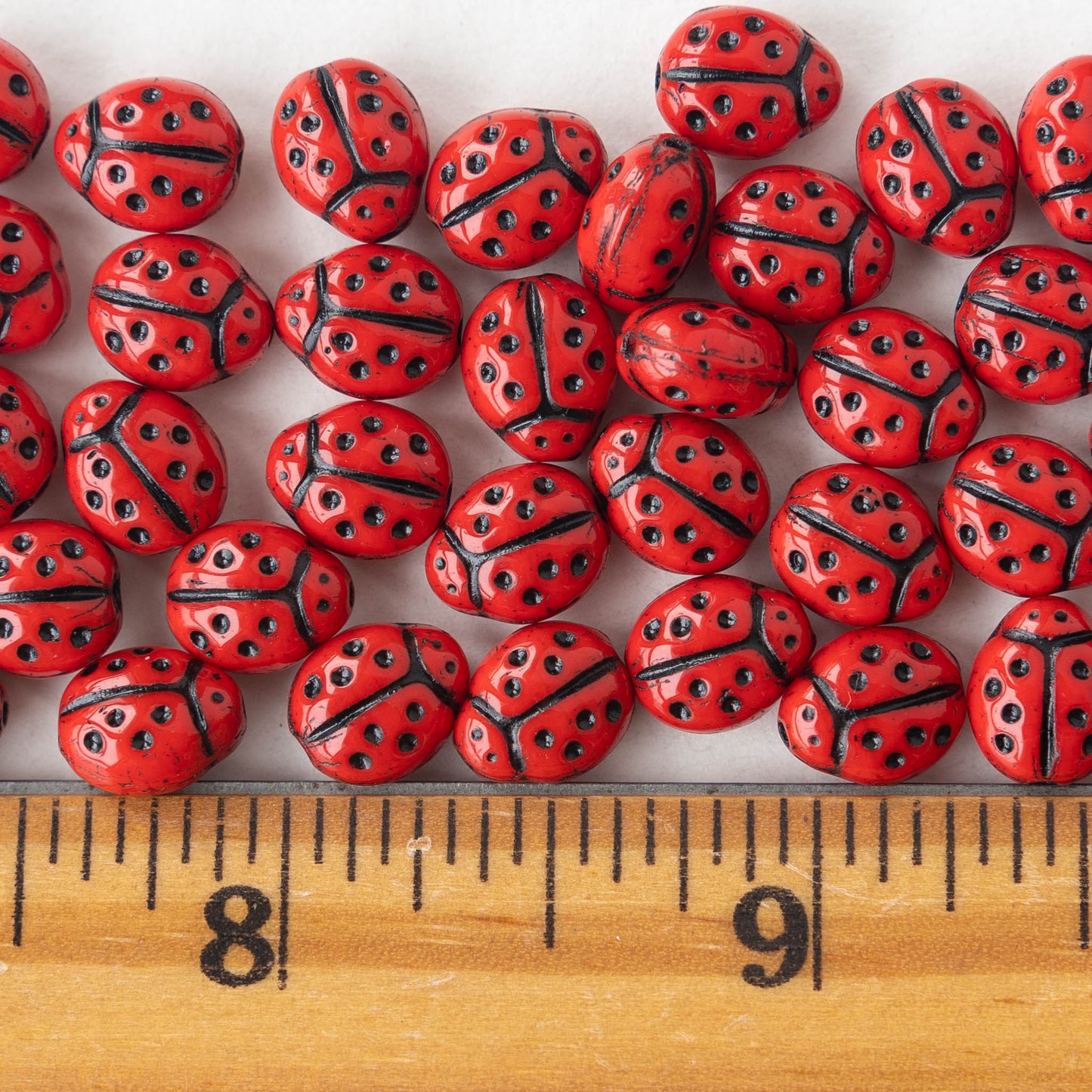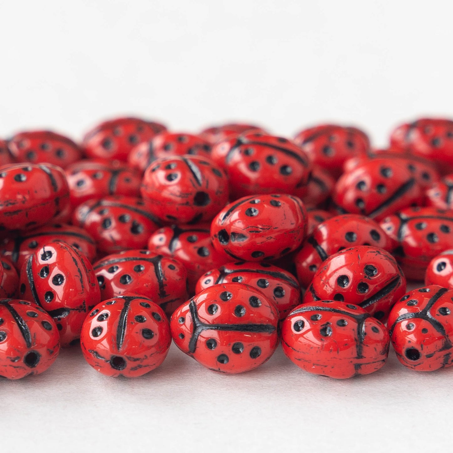 Red with Black Wash 20 ladybugs Bead Size:9x7mm Hole Size: ~1mm
