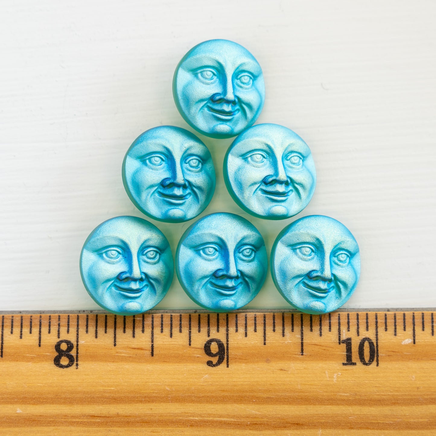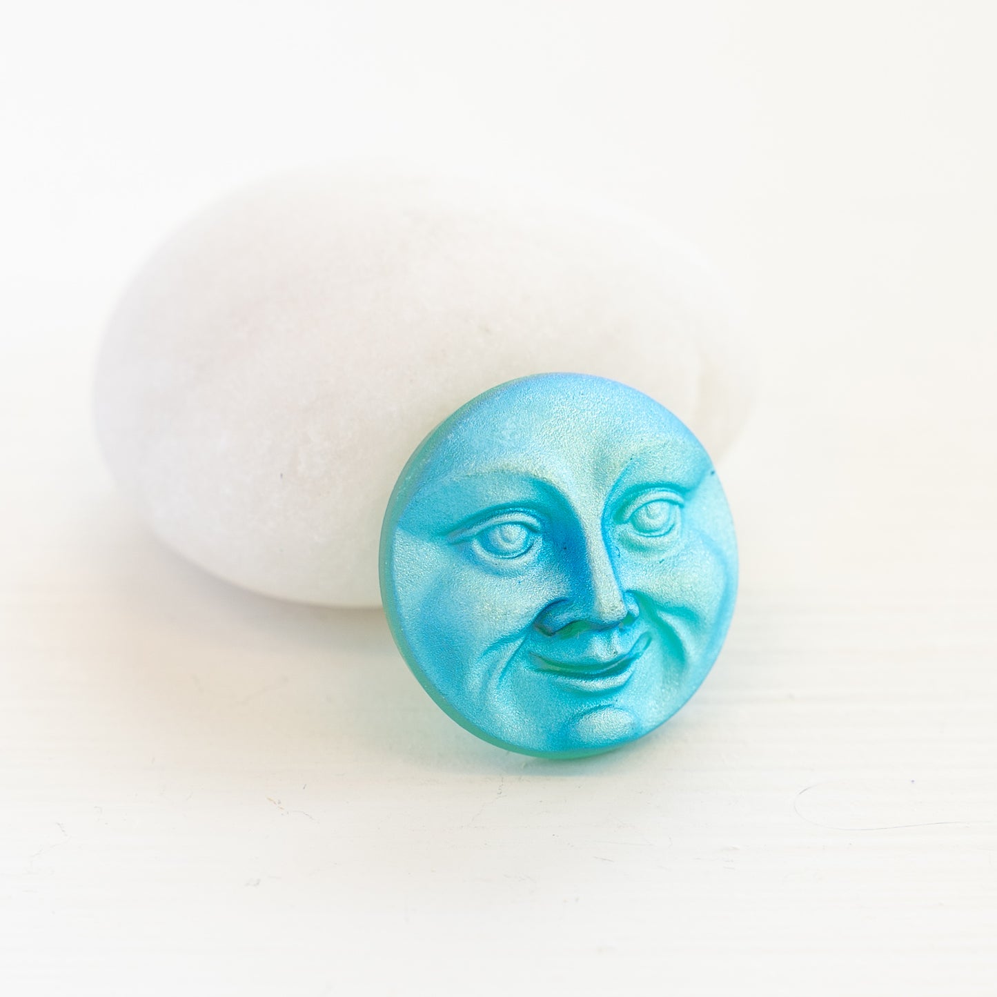 18mm Glass Moon Face Buttons - Aqua Matte AB - 1 Button