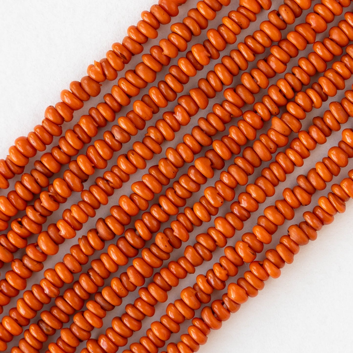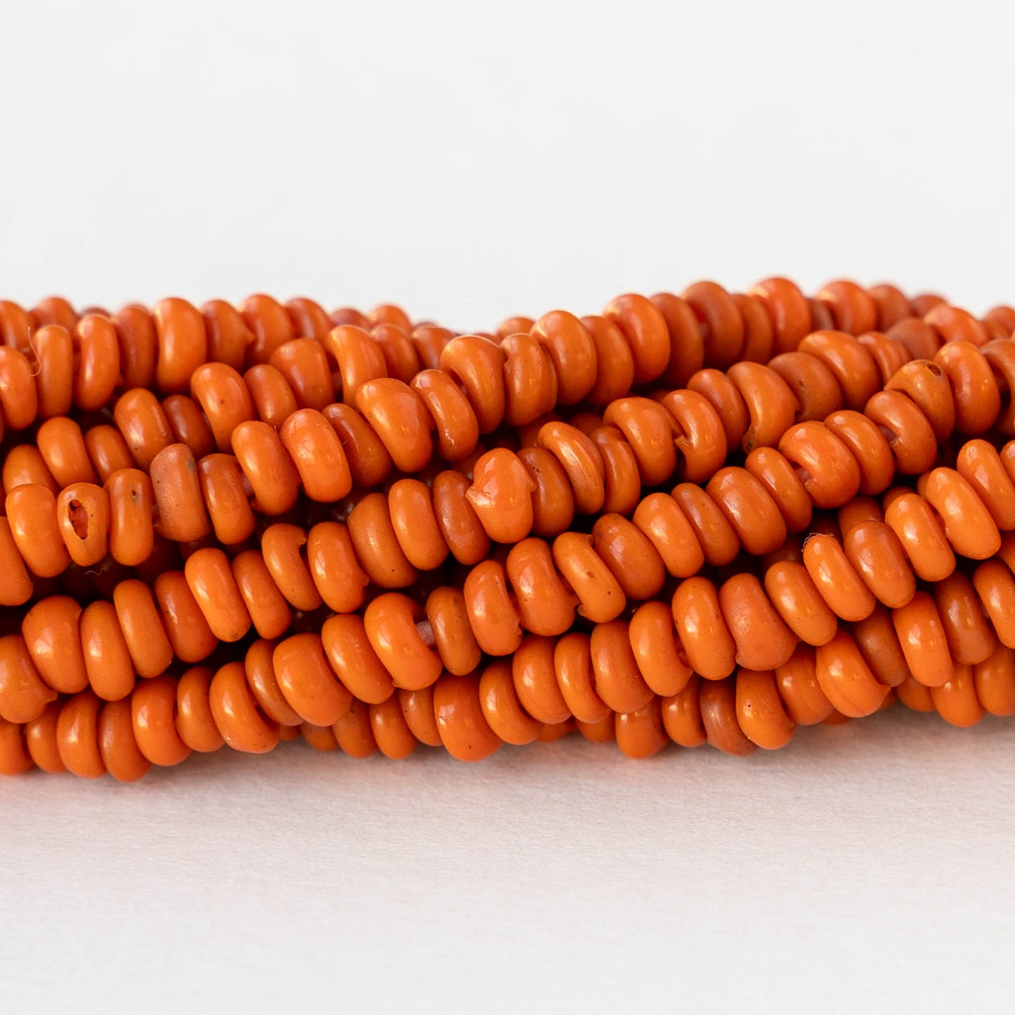 Rustic Indonesian Glass Ring Beads - Opaque Orange - Whole or Half Strand