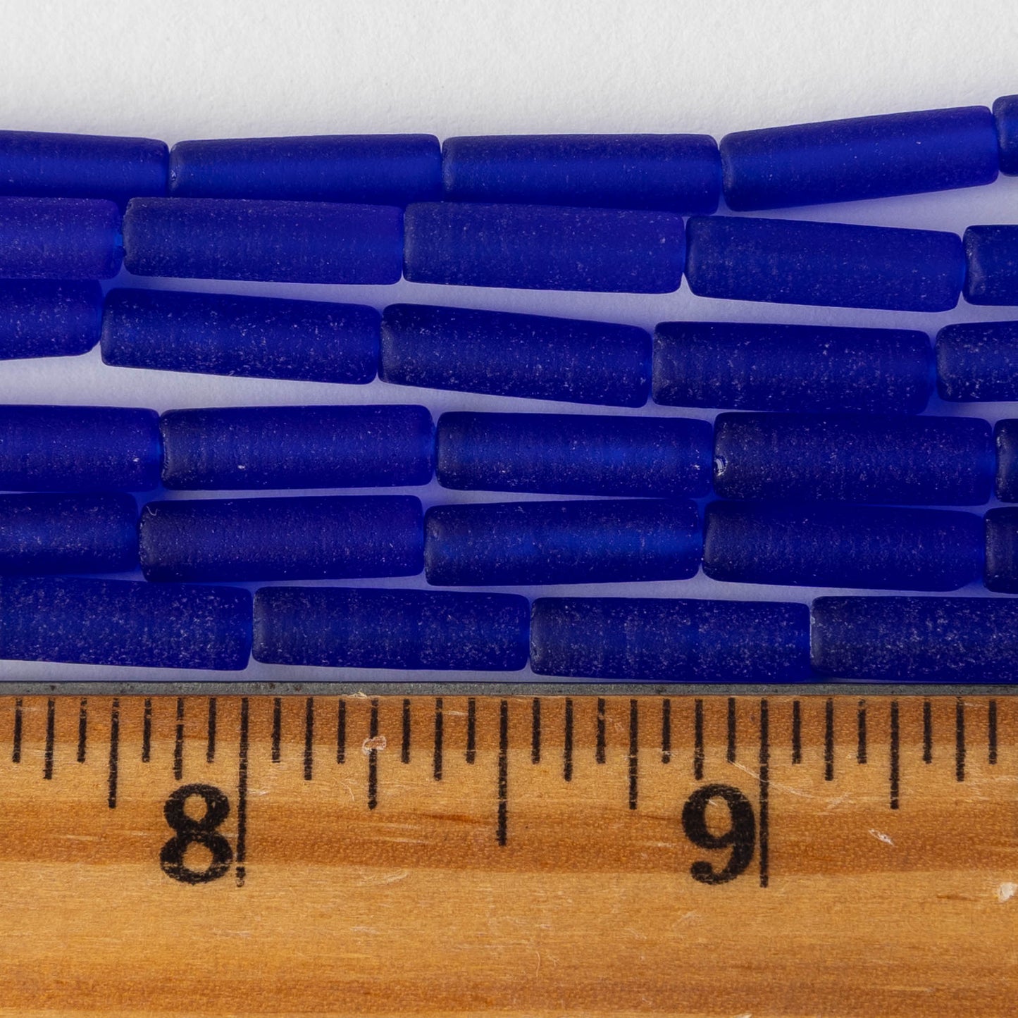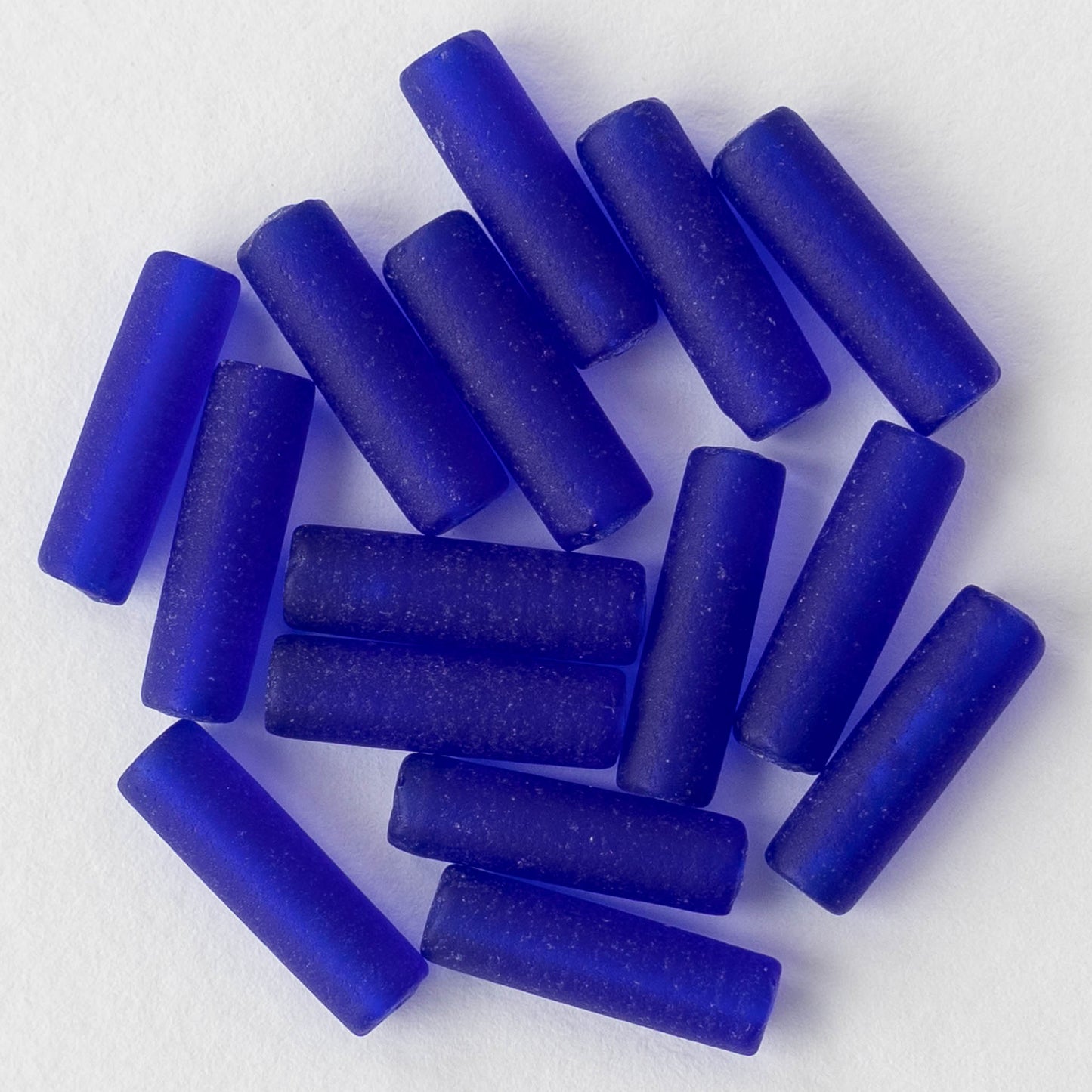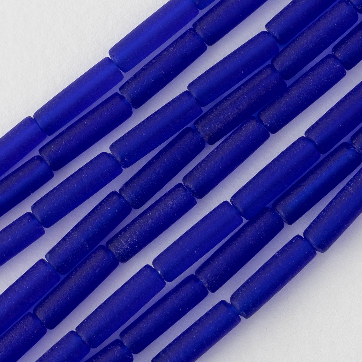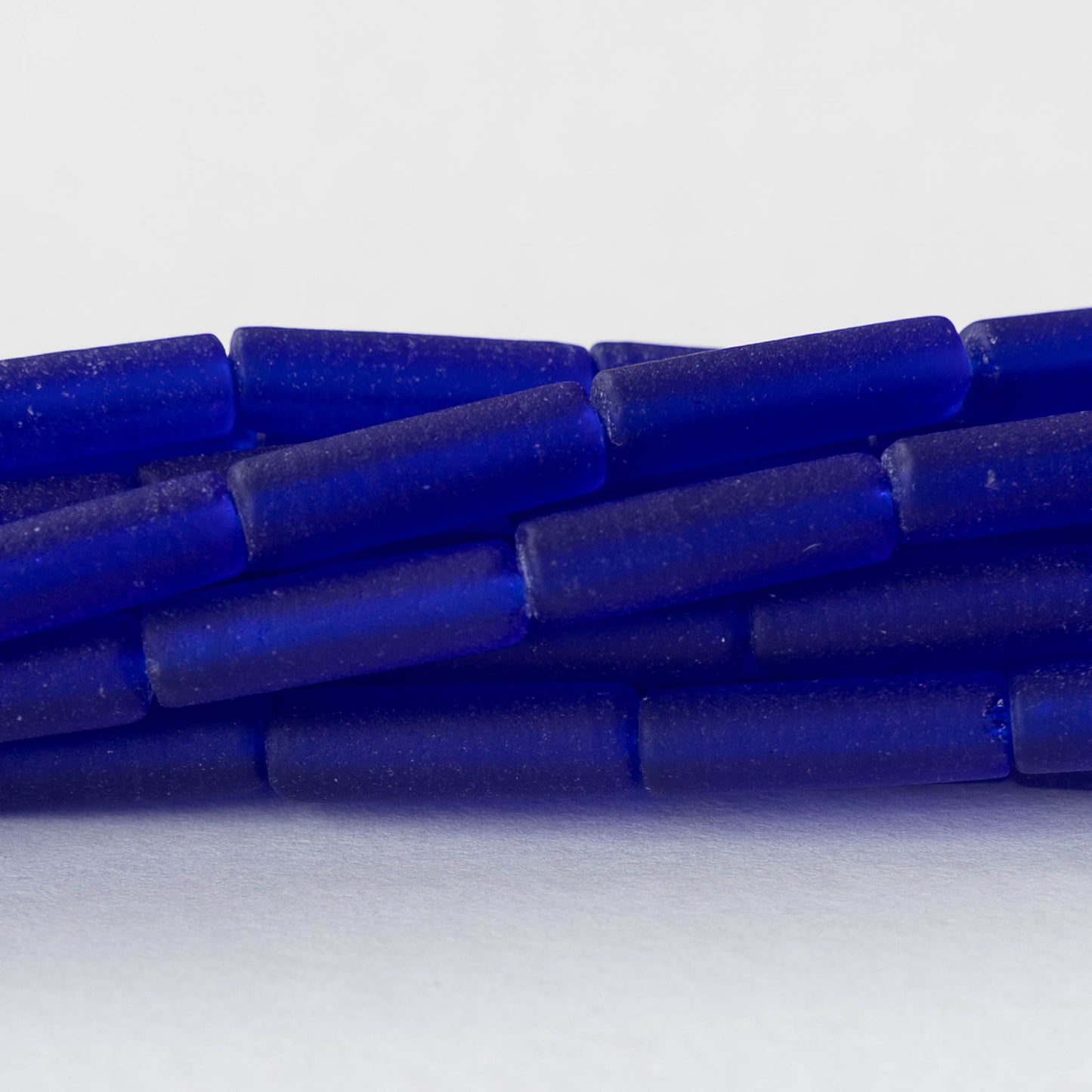 4x14mm Frosted Glass Tube Beads - Transparent Cobalt Blue - Choose Amount